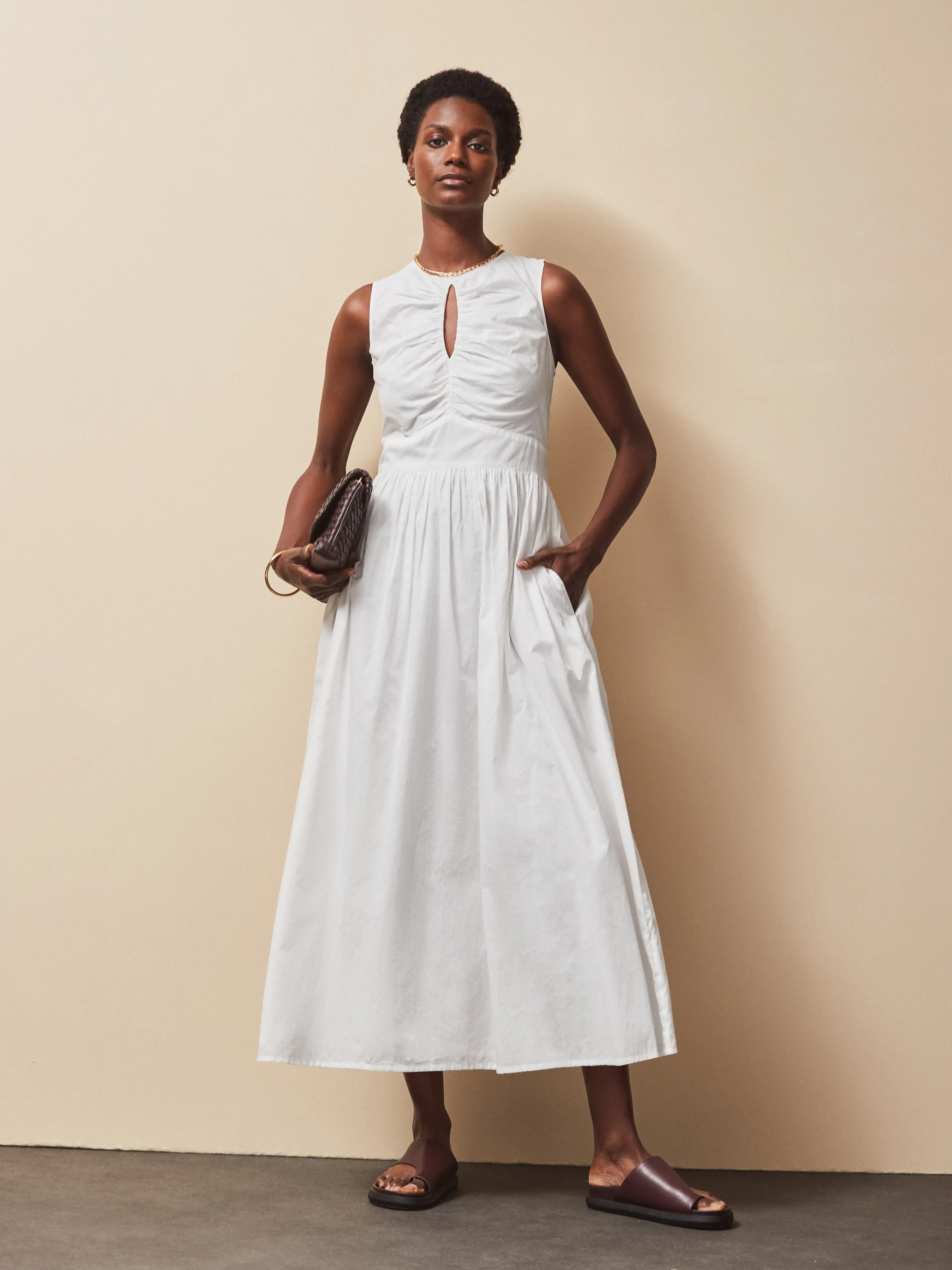 Petite White Cotton Voile Keyhole Front Midi Dress