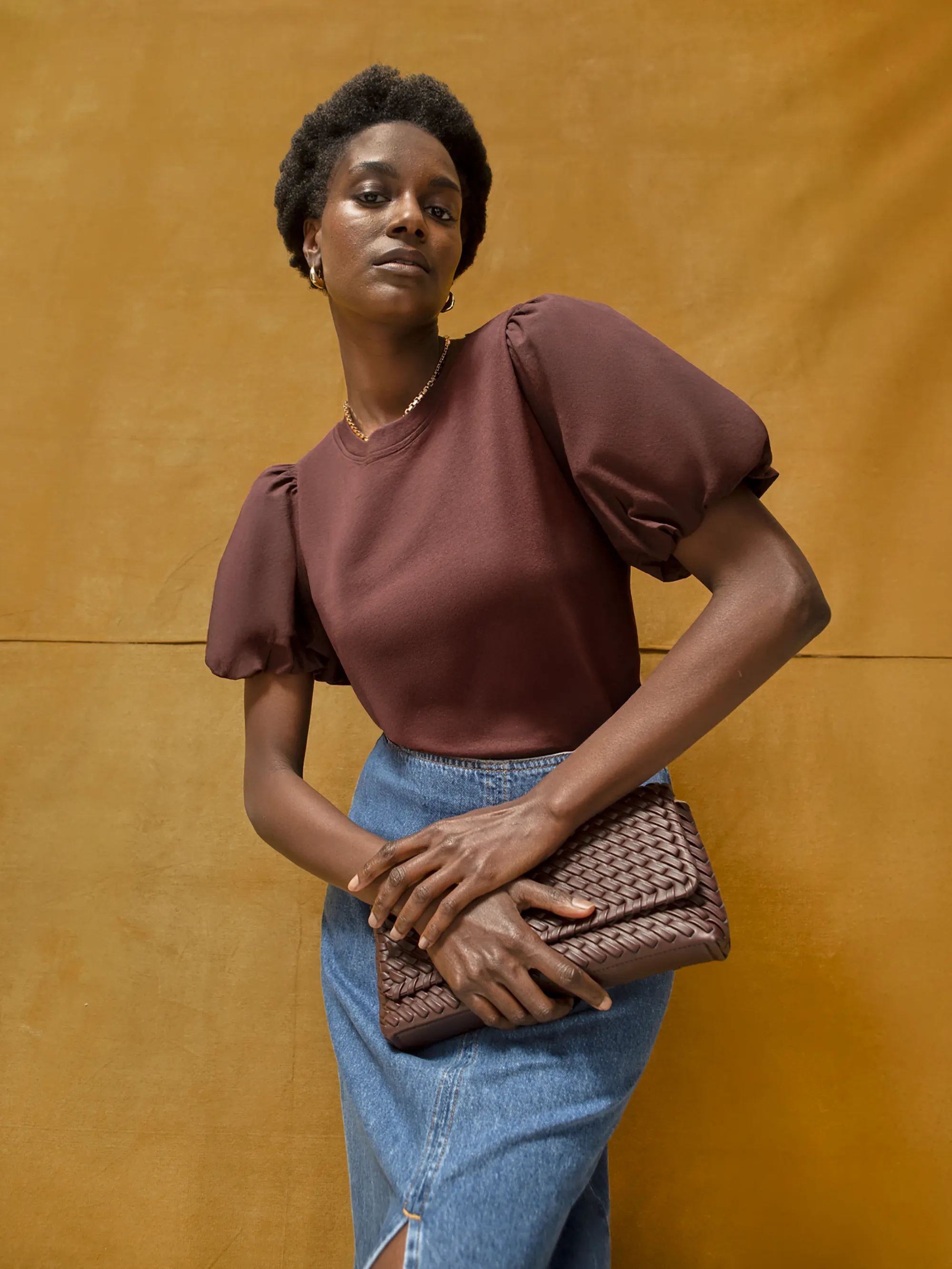 Chocolate Pure Cotton Puff Sleeve T-Shirt
