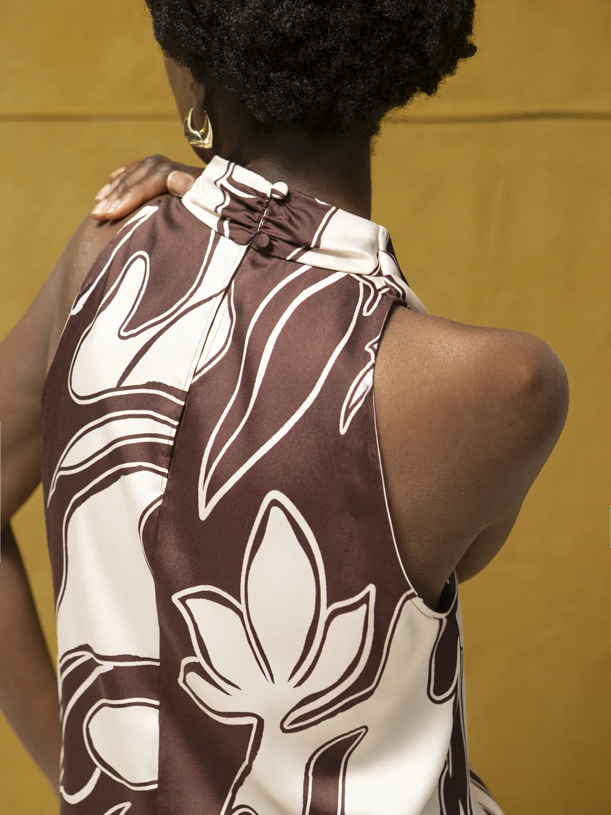 Brown Swirl Print Drape Top
