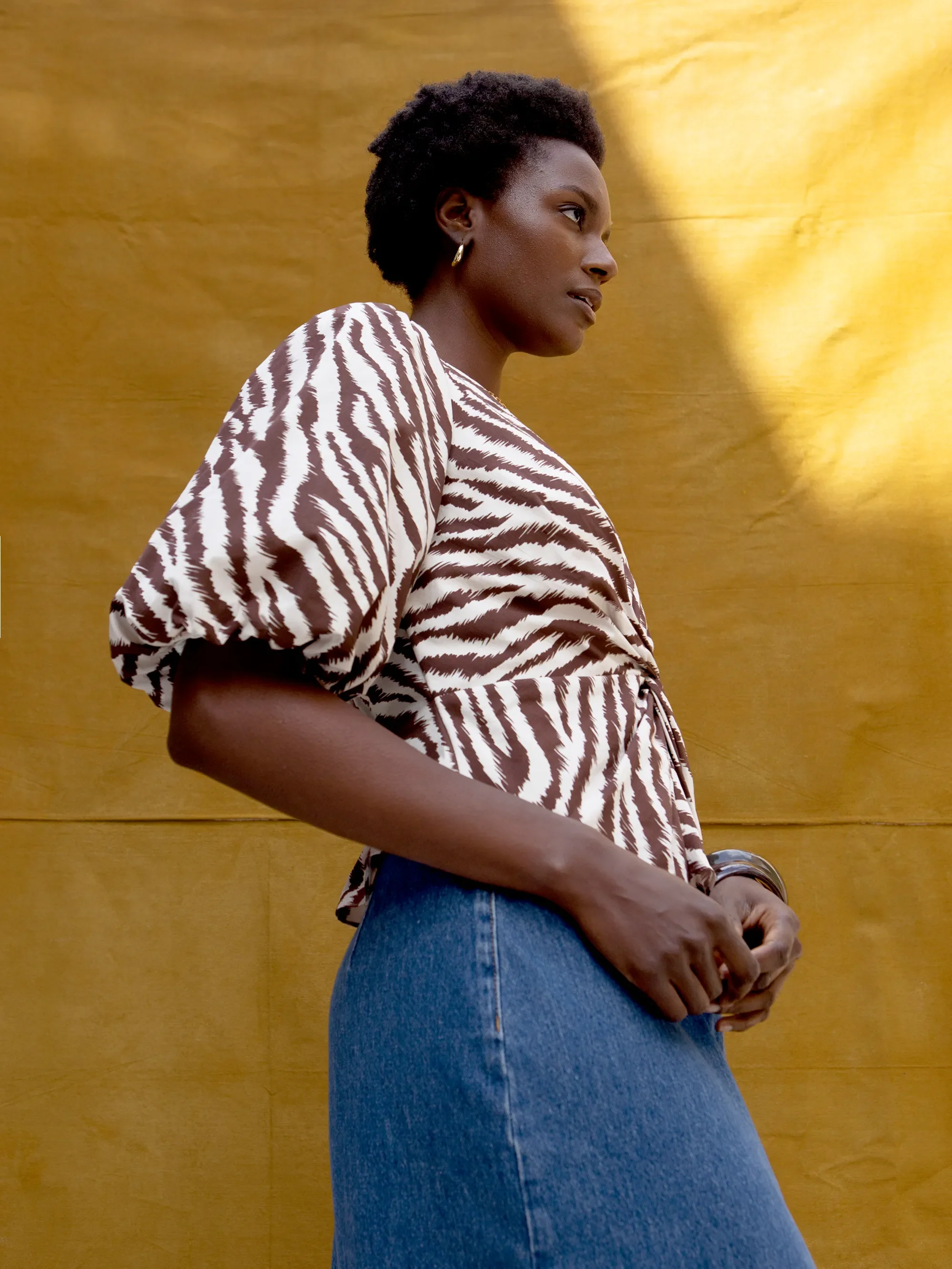 Brown Zebra Print Twist Front Cotton Blouse