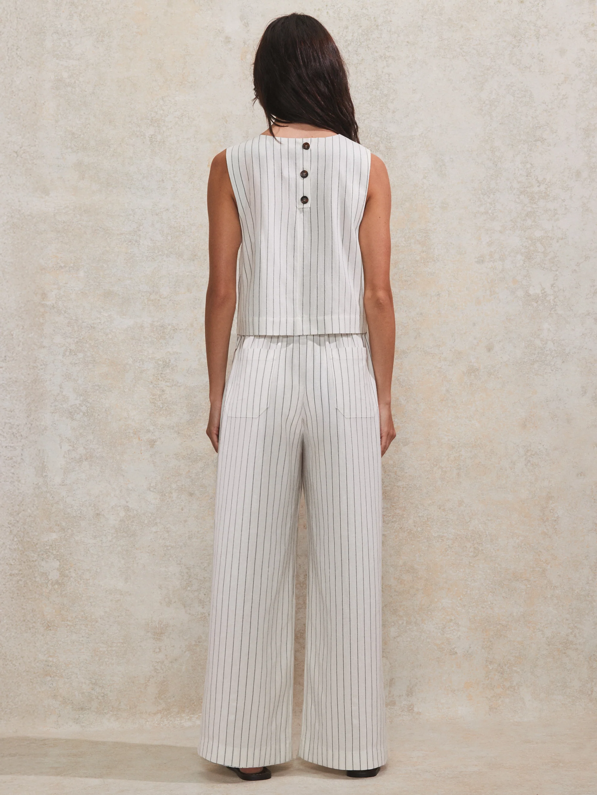 Petite Ivory Pinstripe Linen-Blend Wide-Leg Trousers