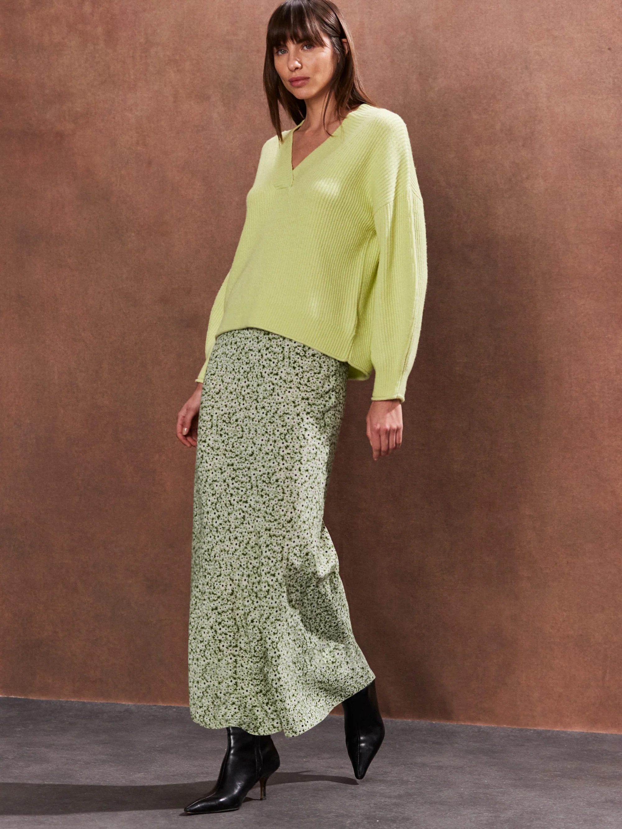 Petite Green Ditsy Bias Cut Maxi Skirt