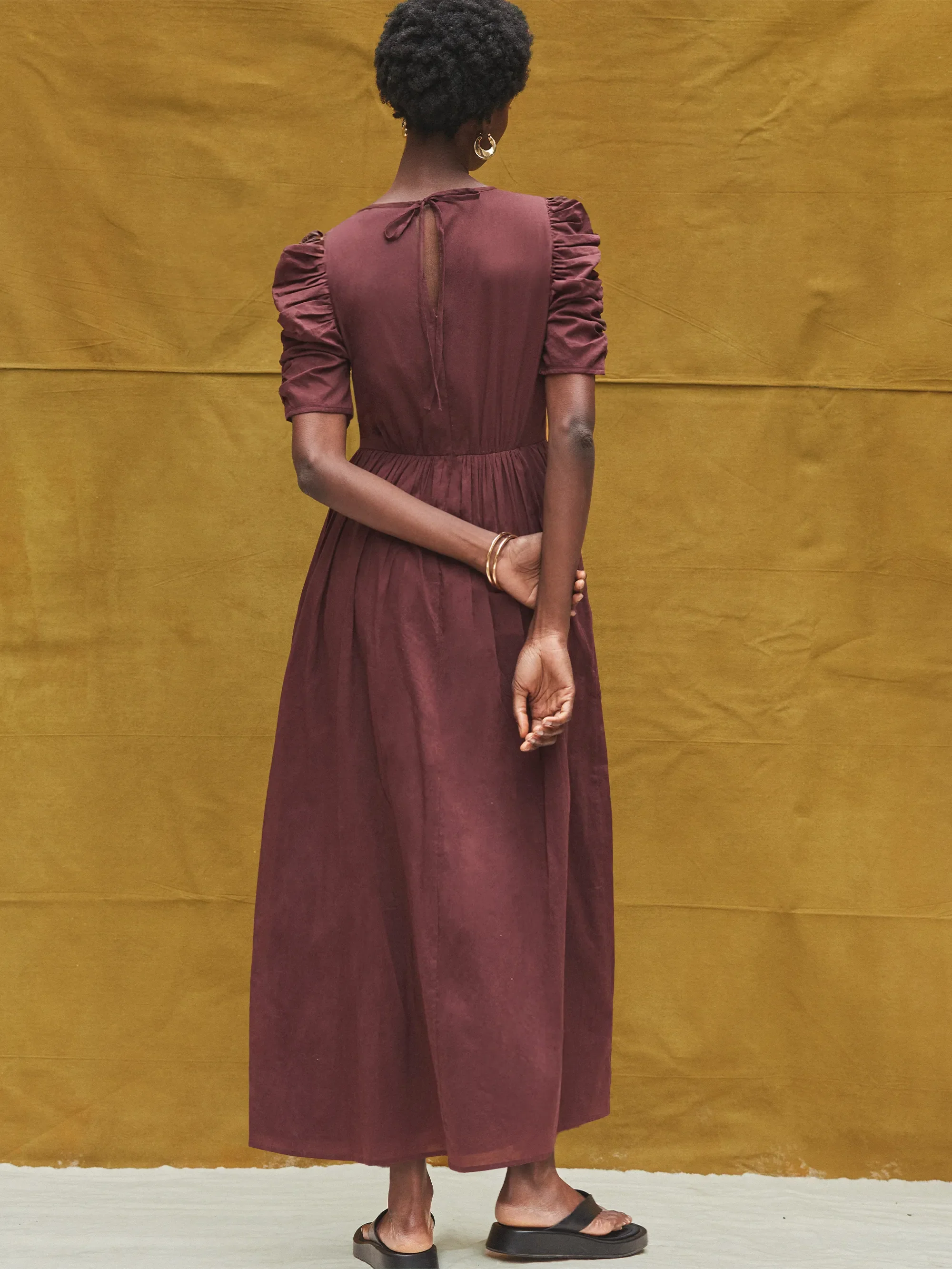 Petite Chocolate Puff-Sleeve Cotton Midi Dress