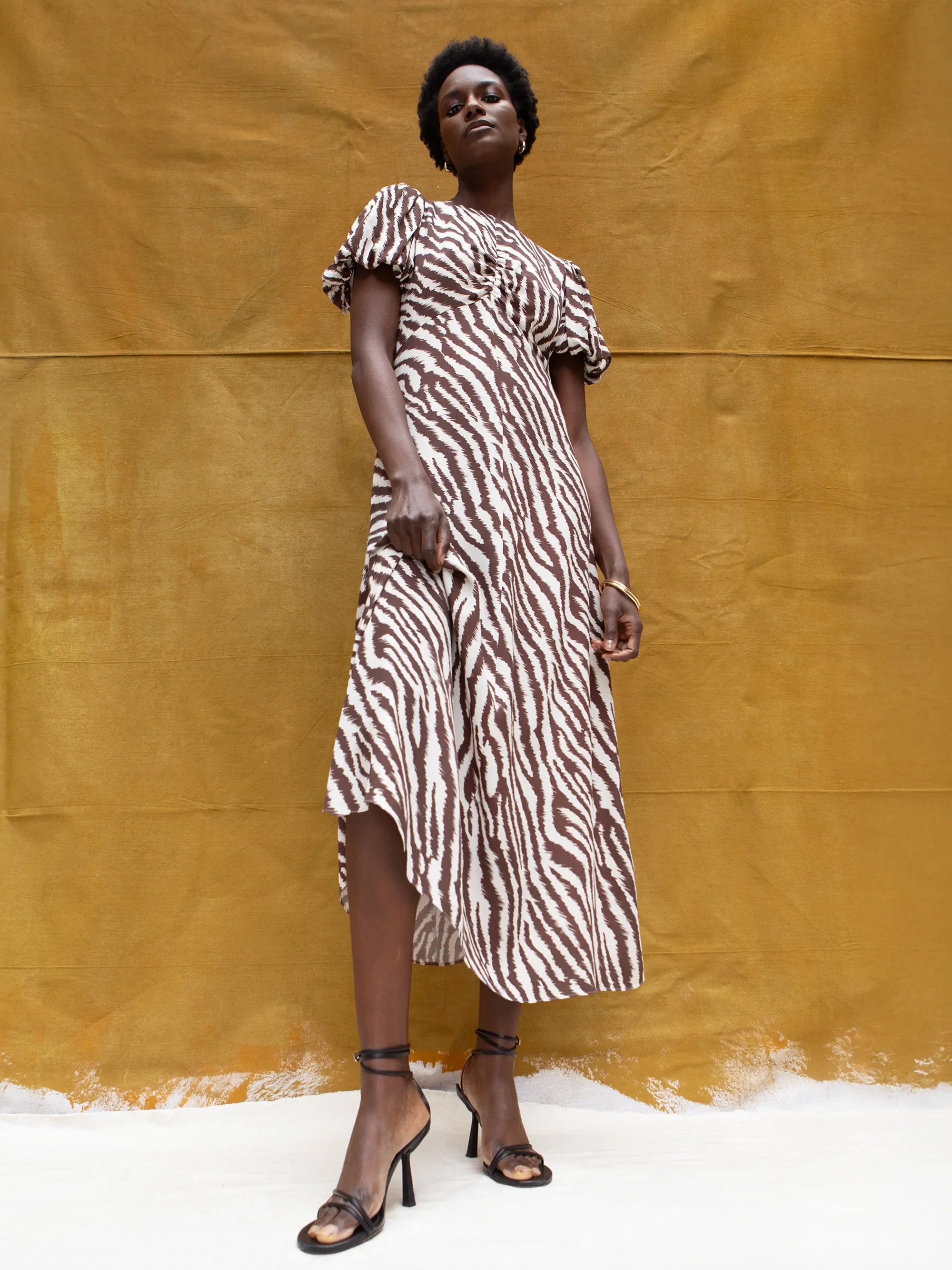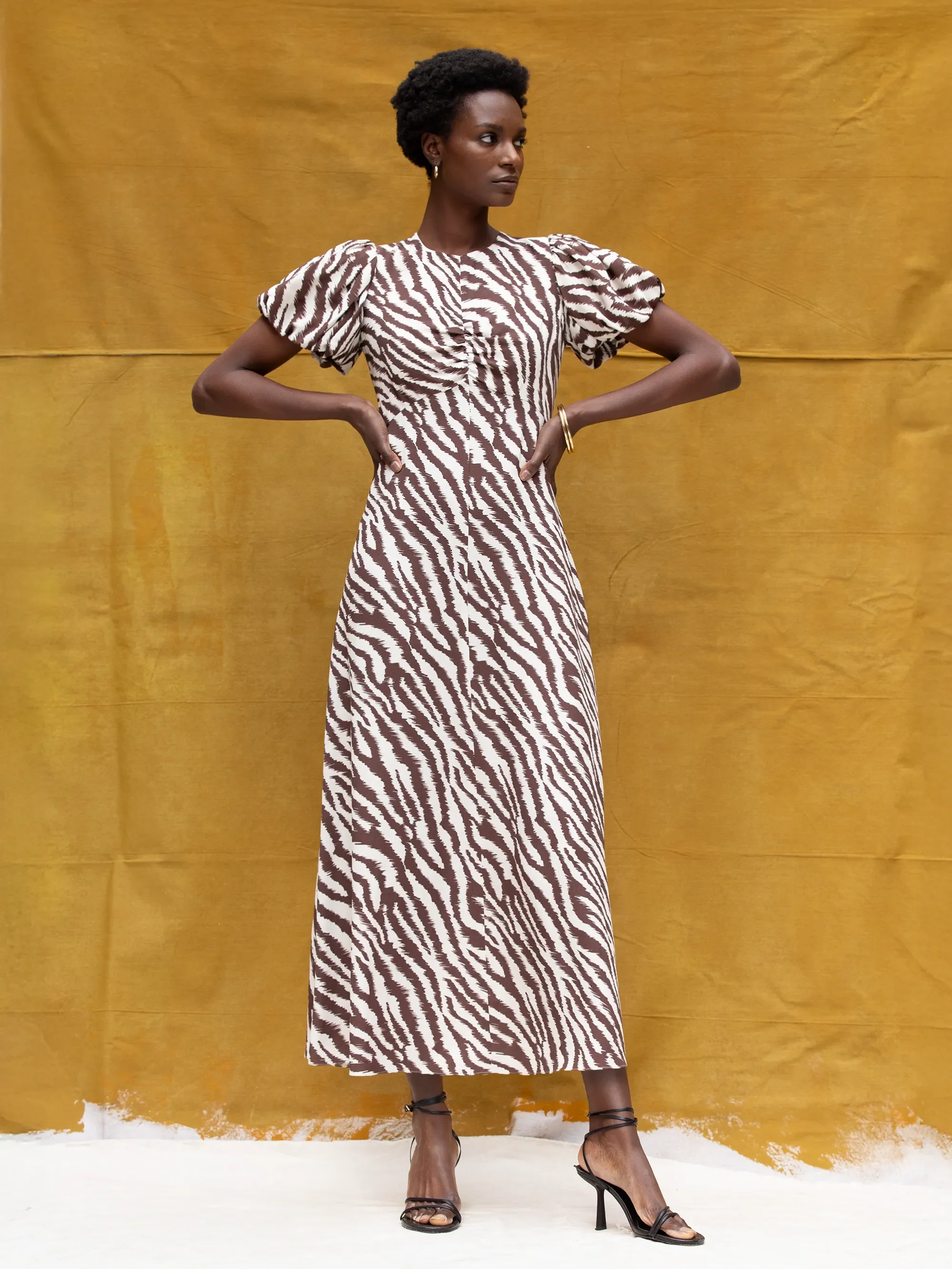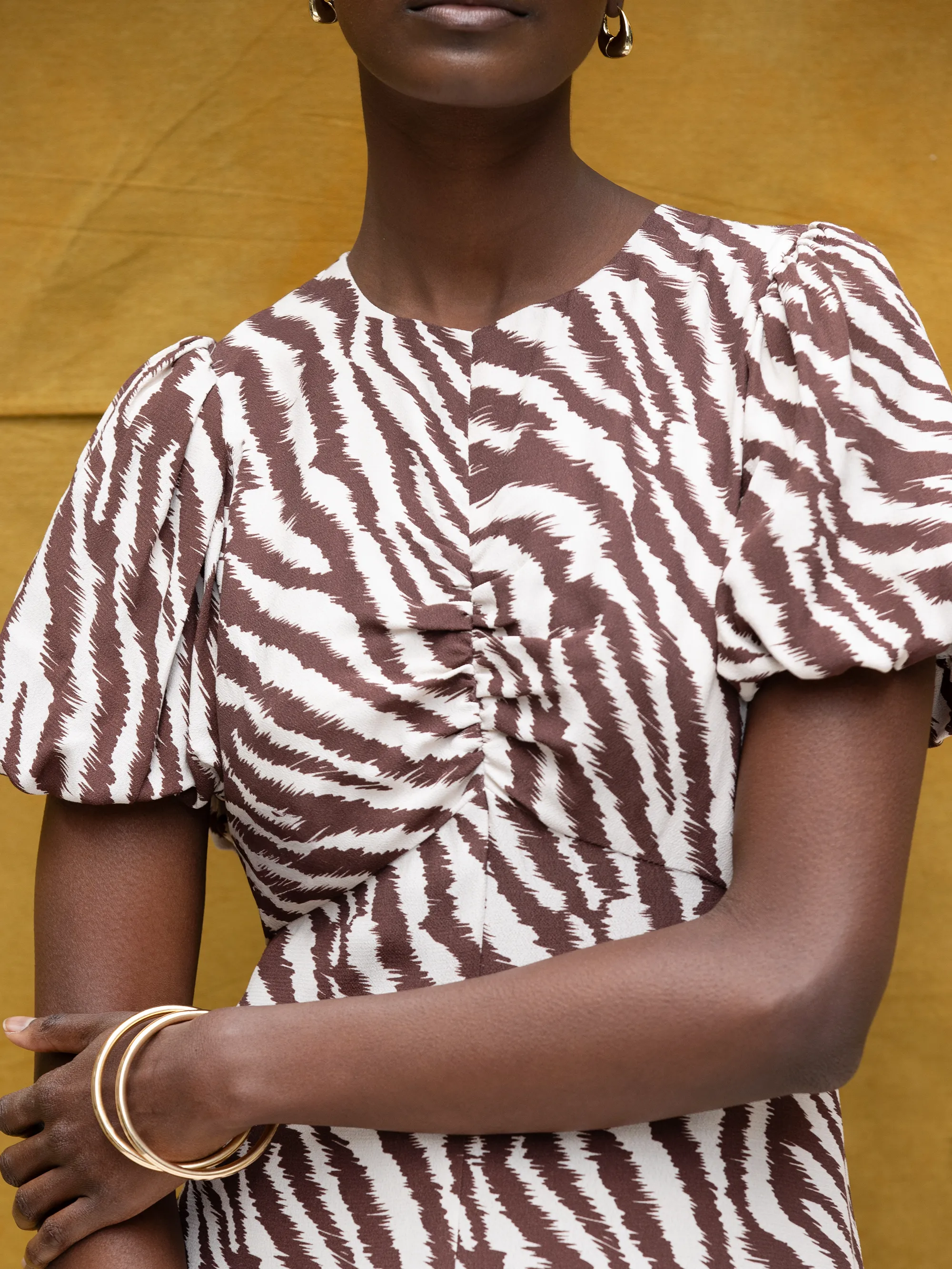 Brown Zebra Print Puff Sleeve Dress
