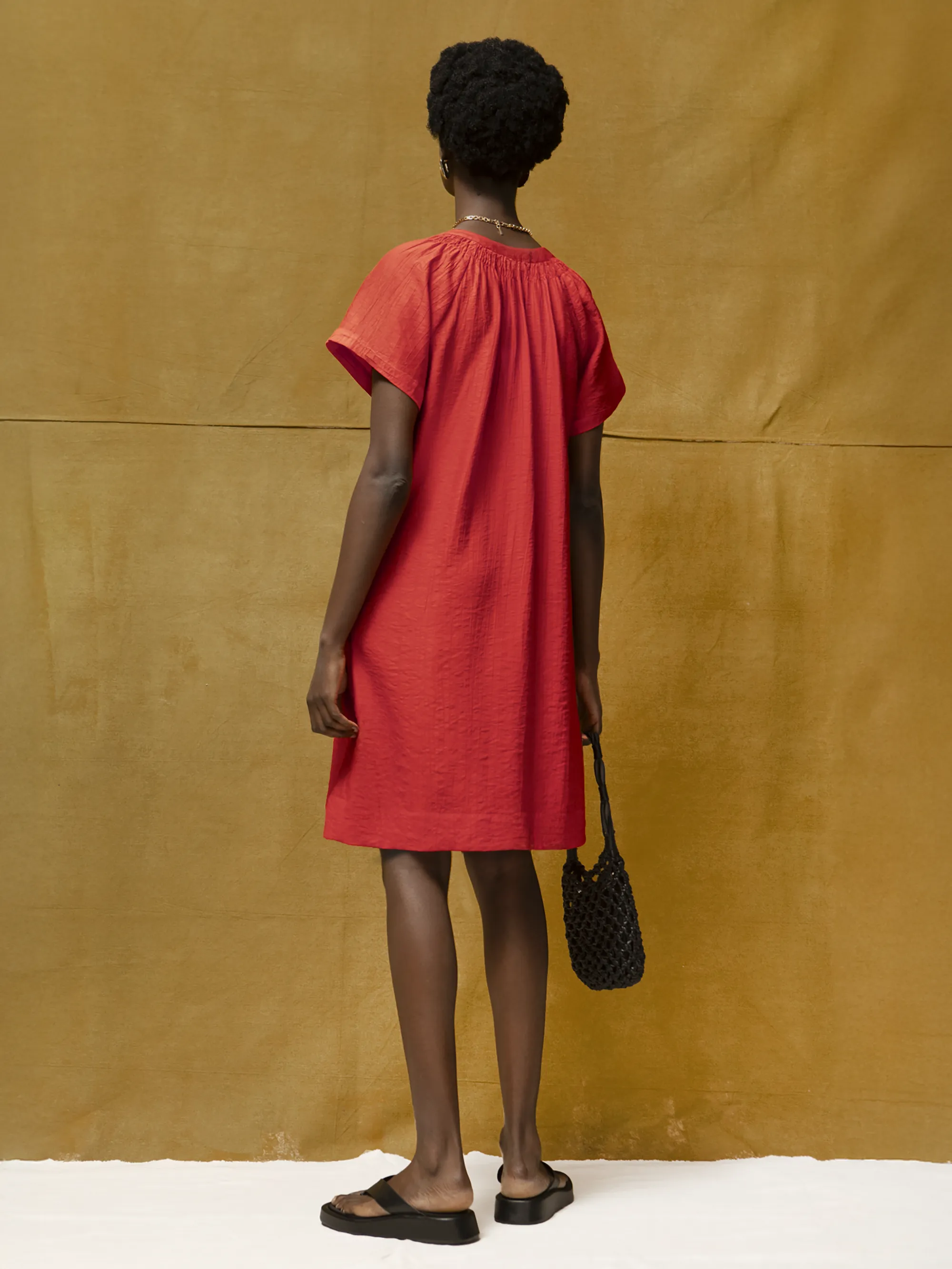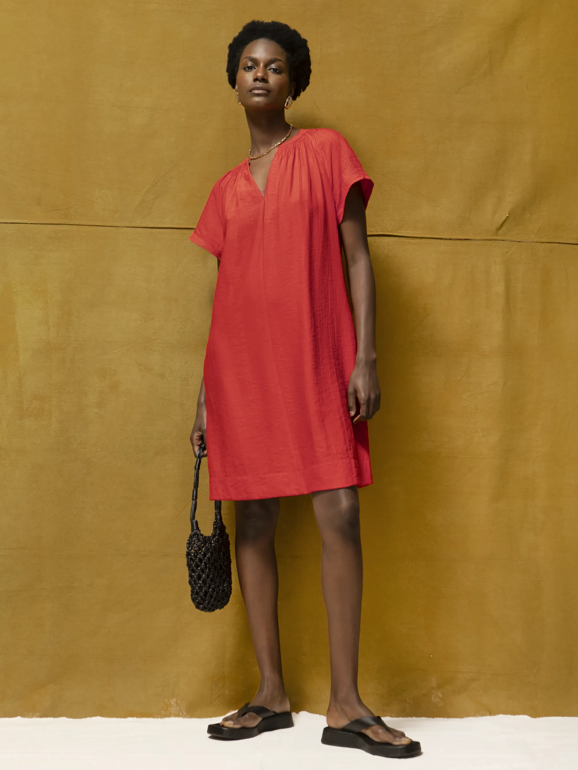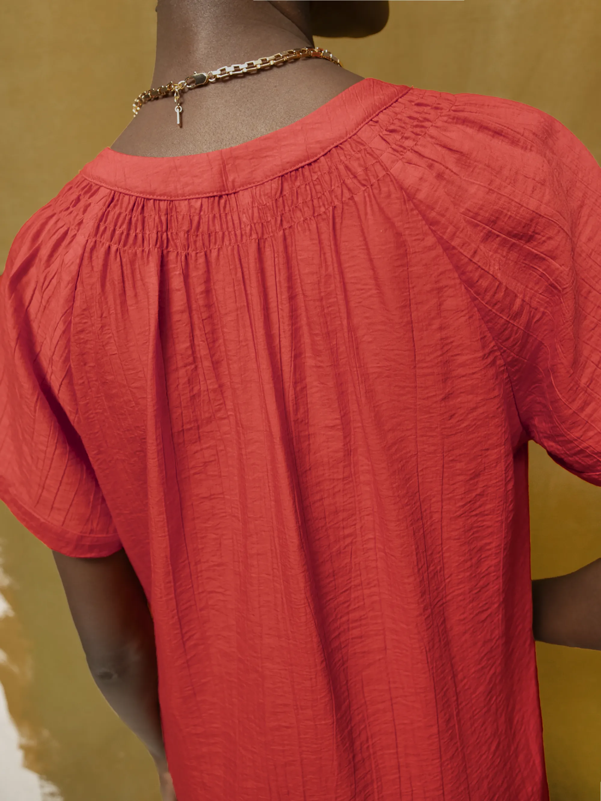 Red Gathered-Detail Short Dress