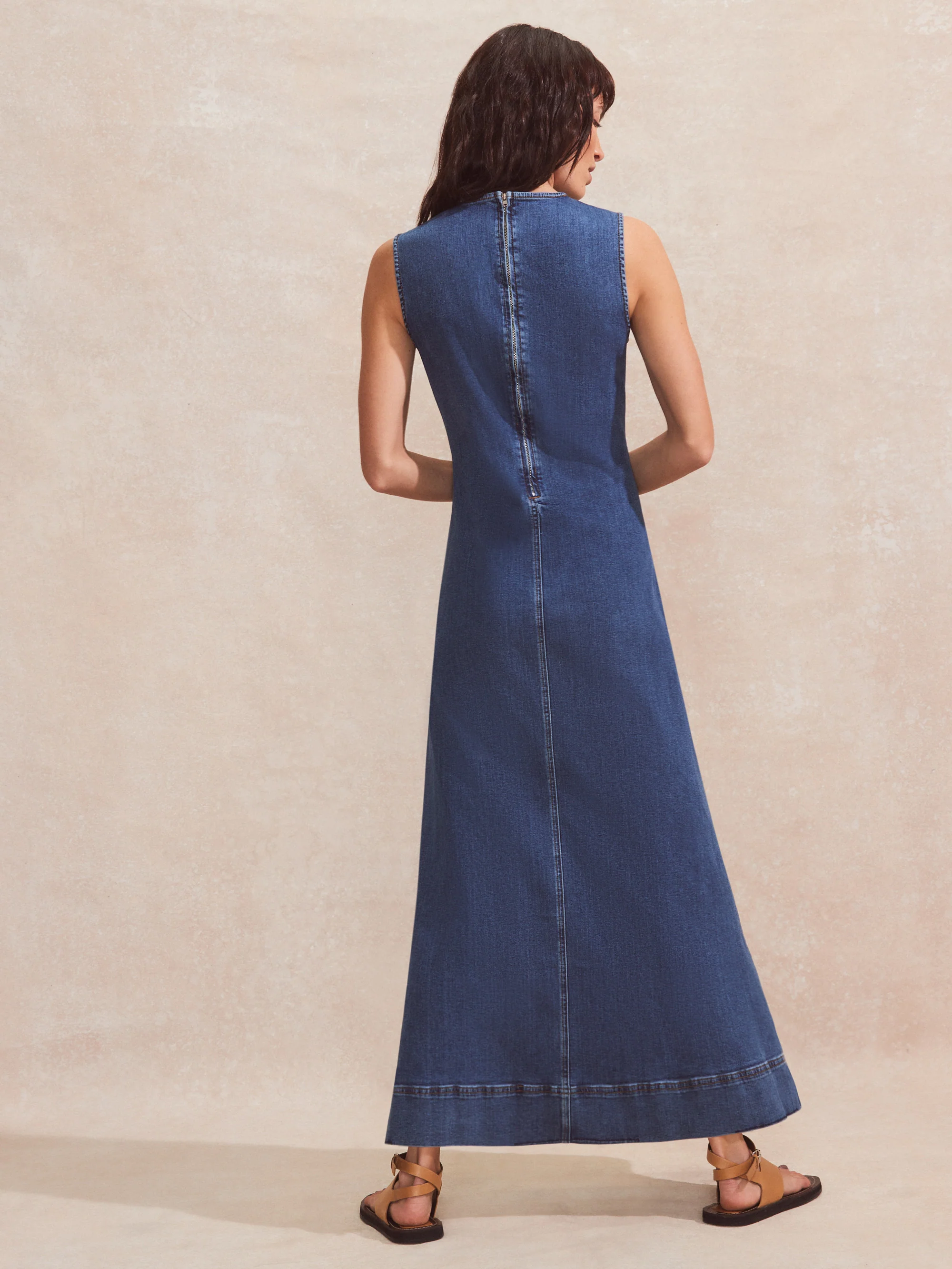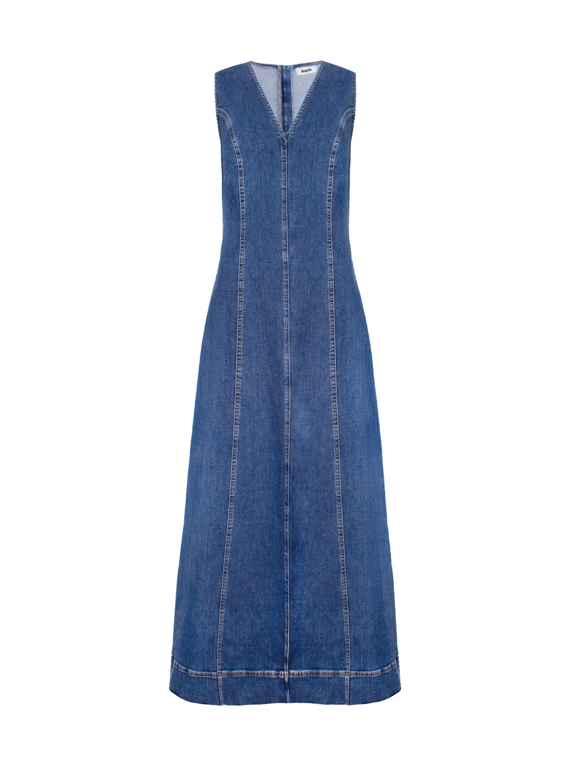 Blue V-Neck Denim Maxi Dress