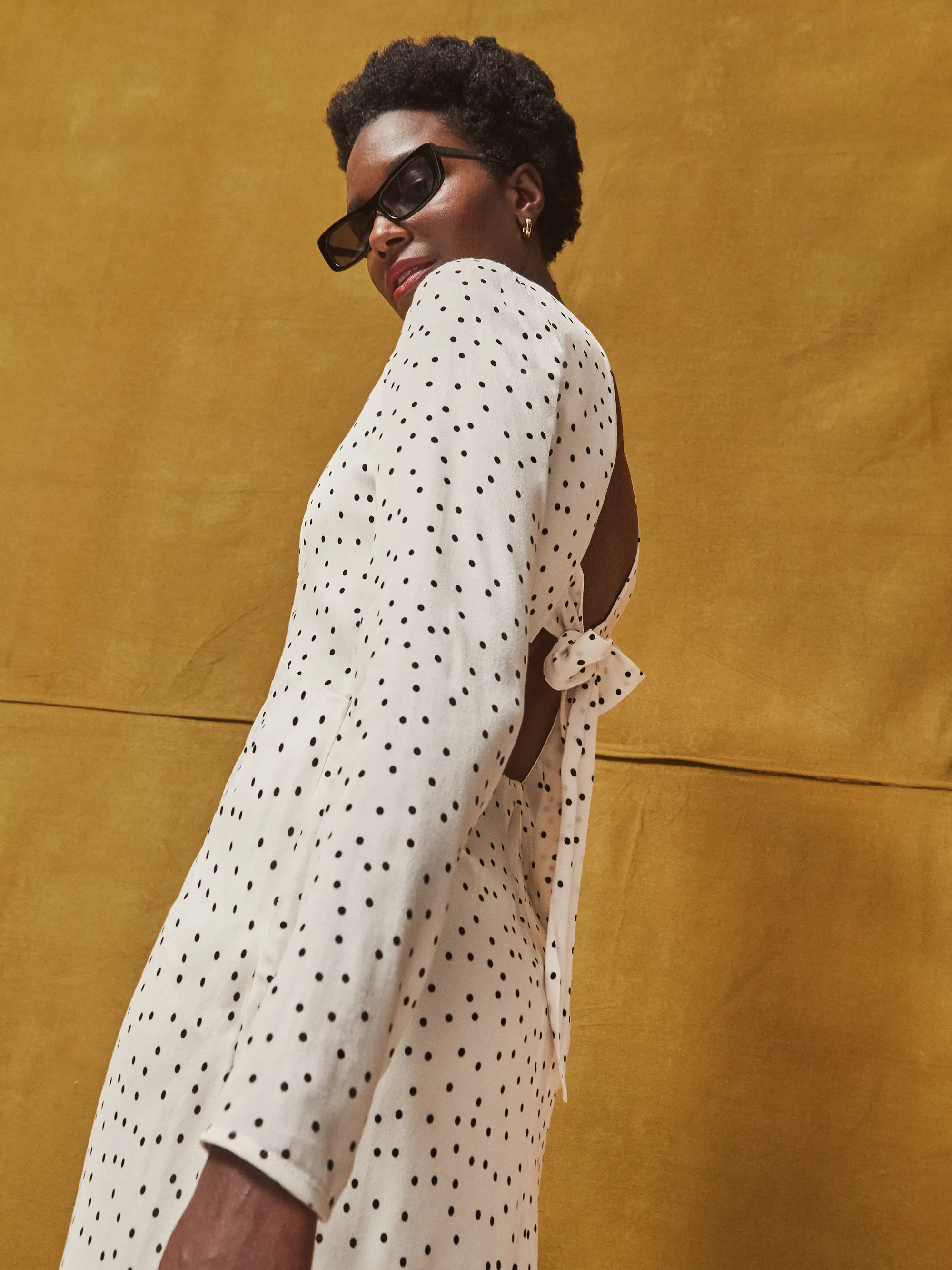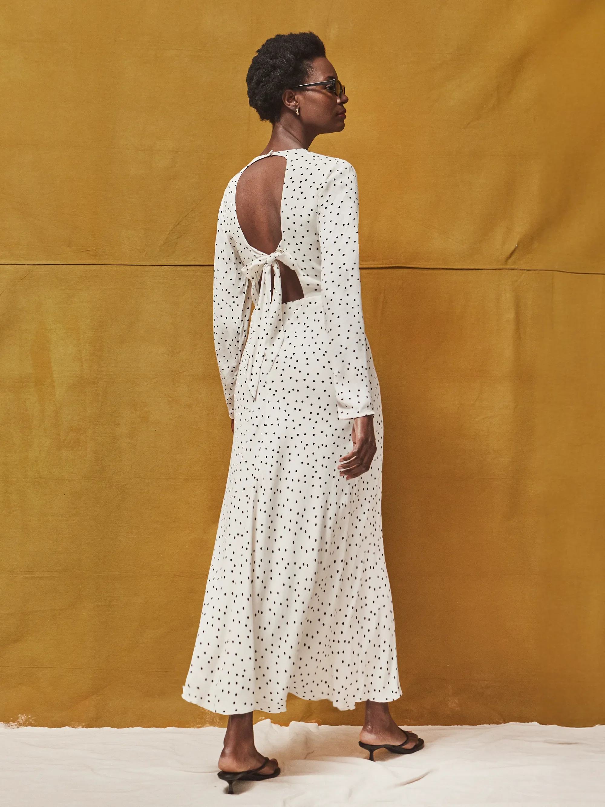Black And White Polka Dot Tie Back Dress