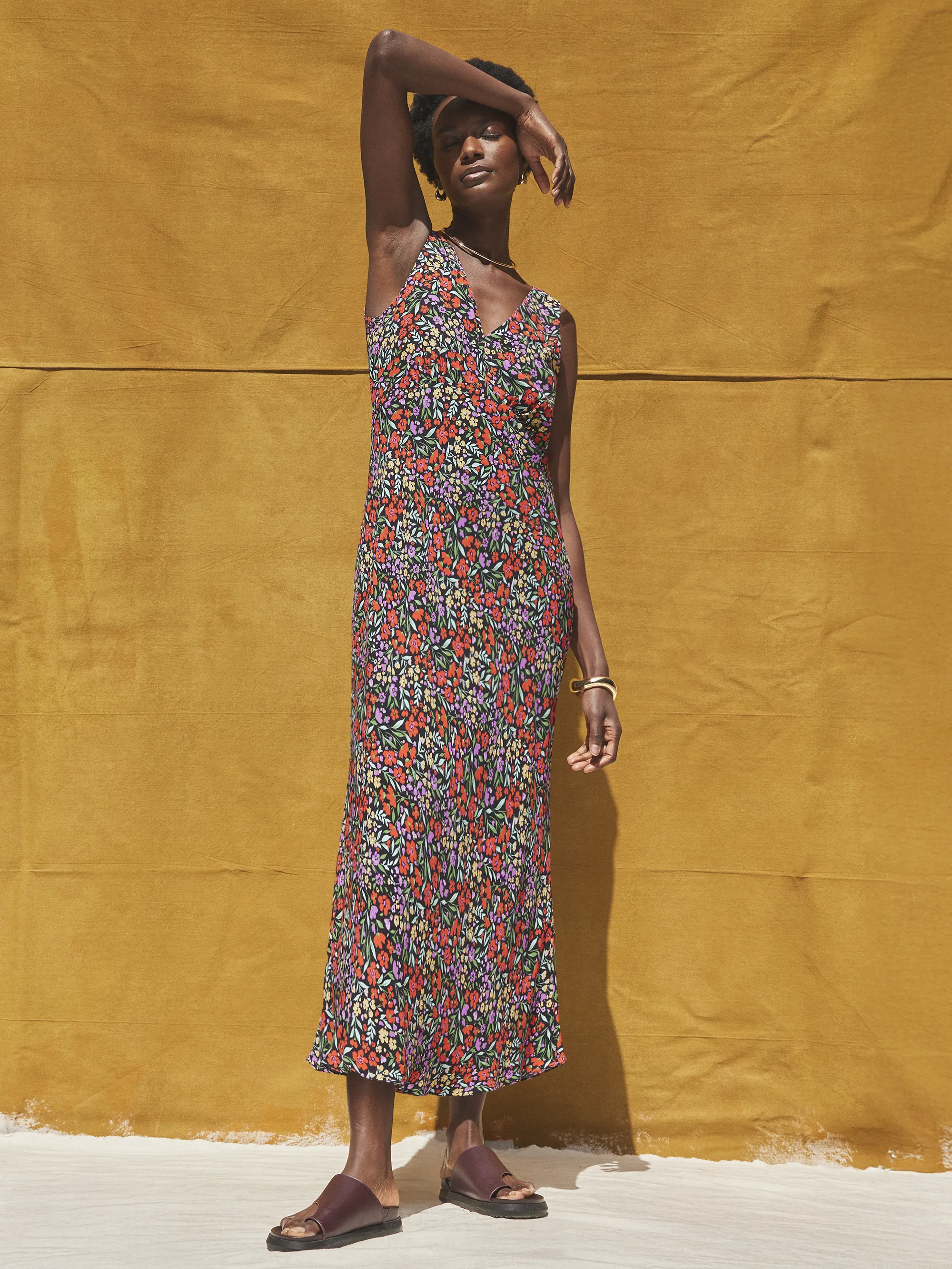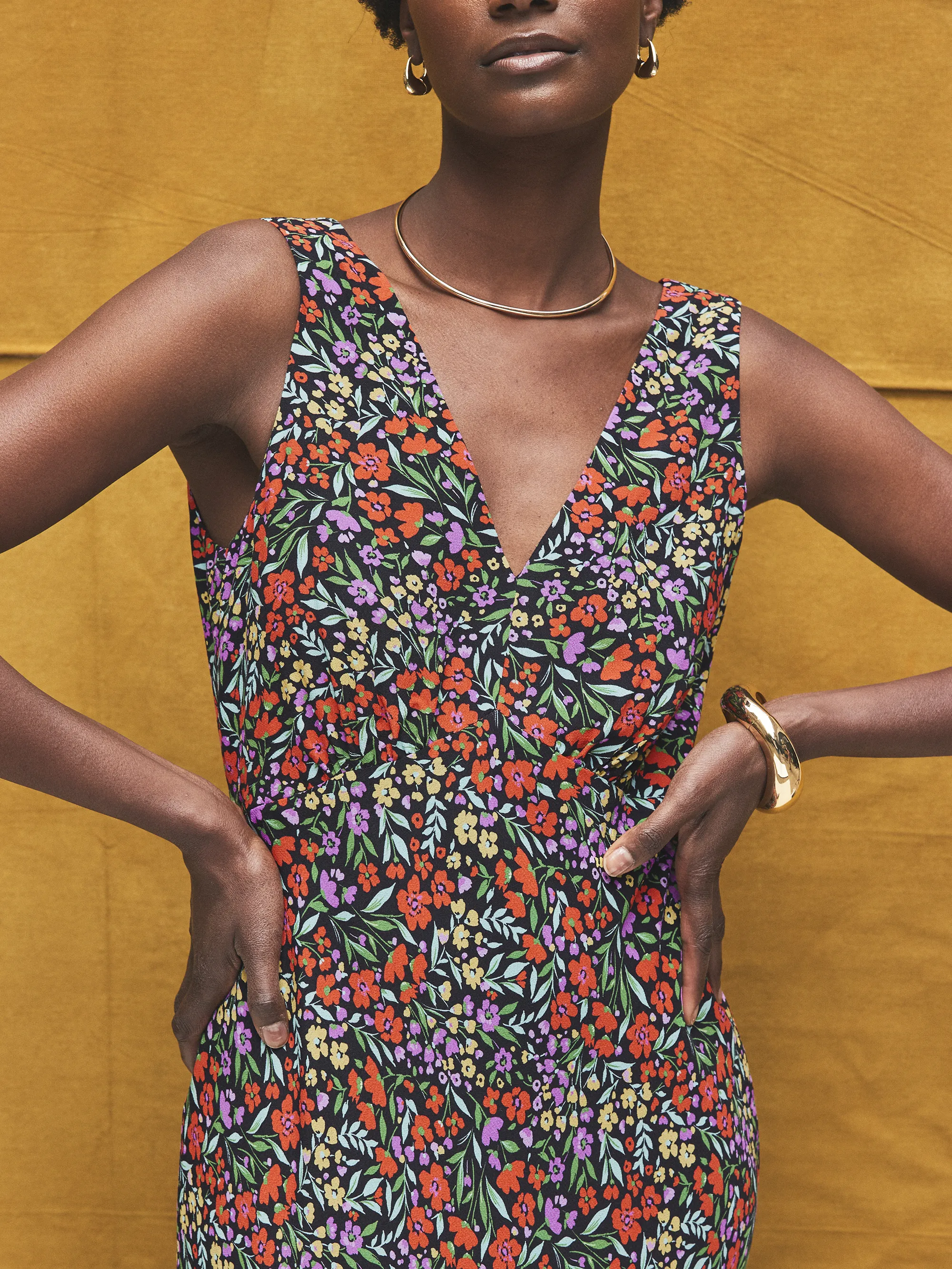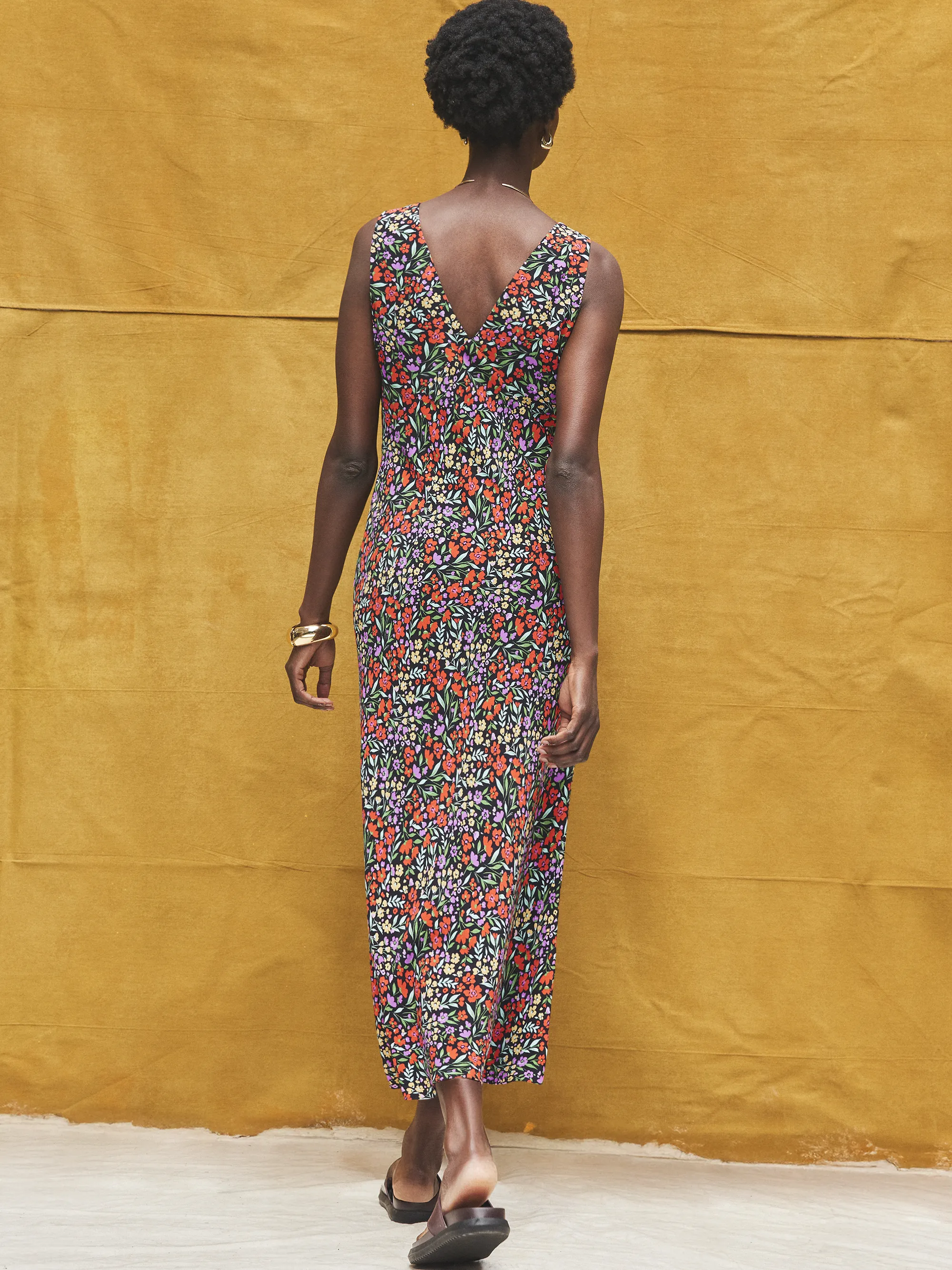 Ditsy-Print V-Neck Midi Dress