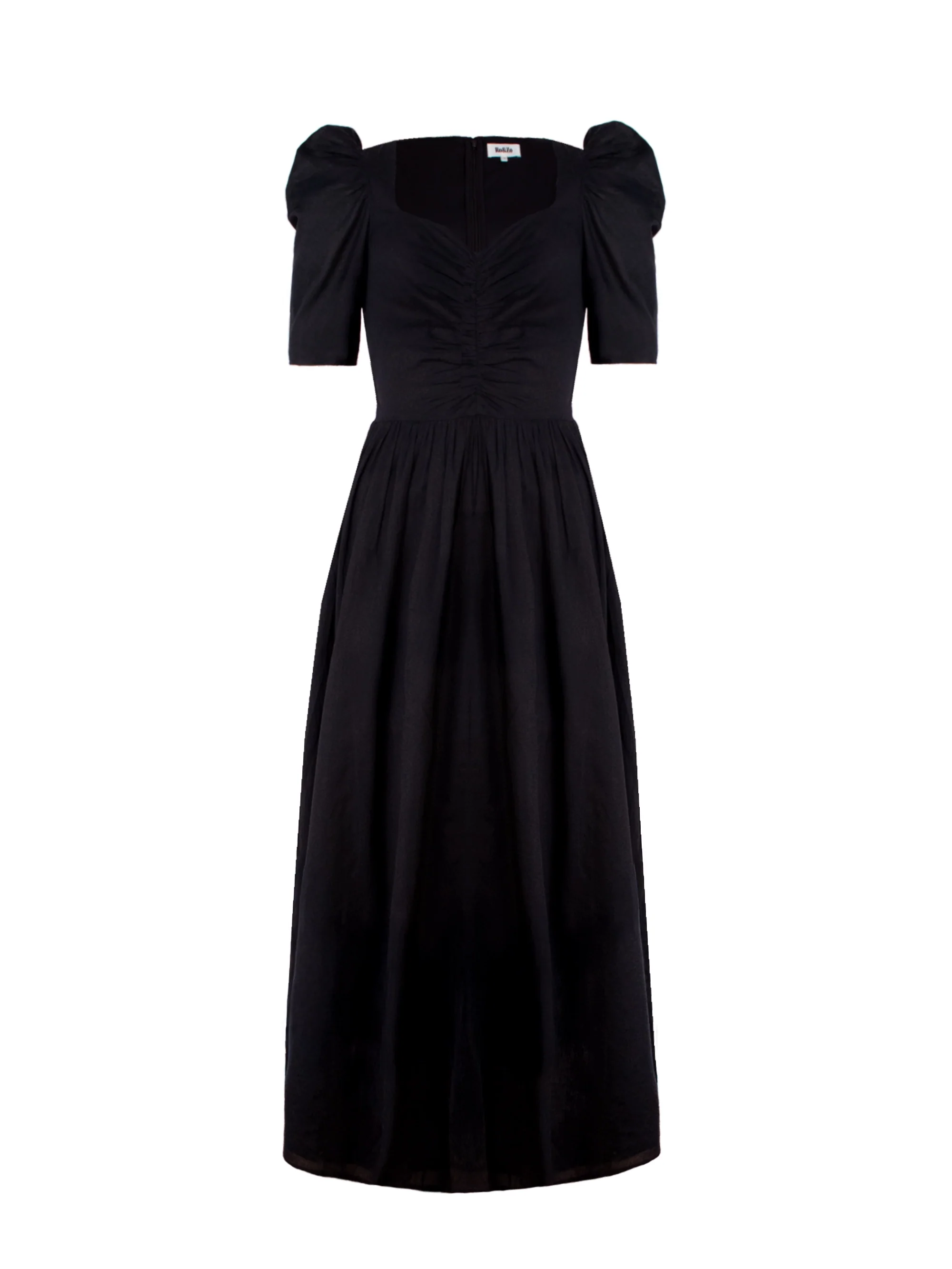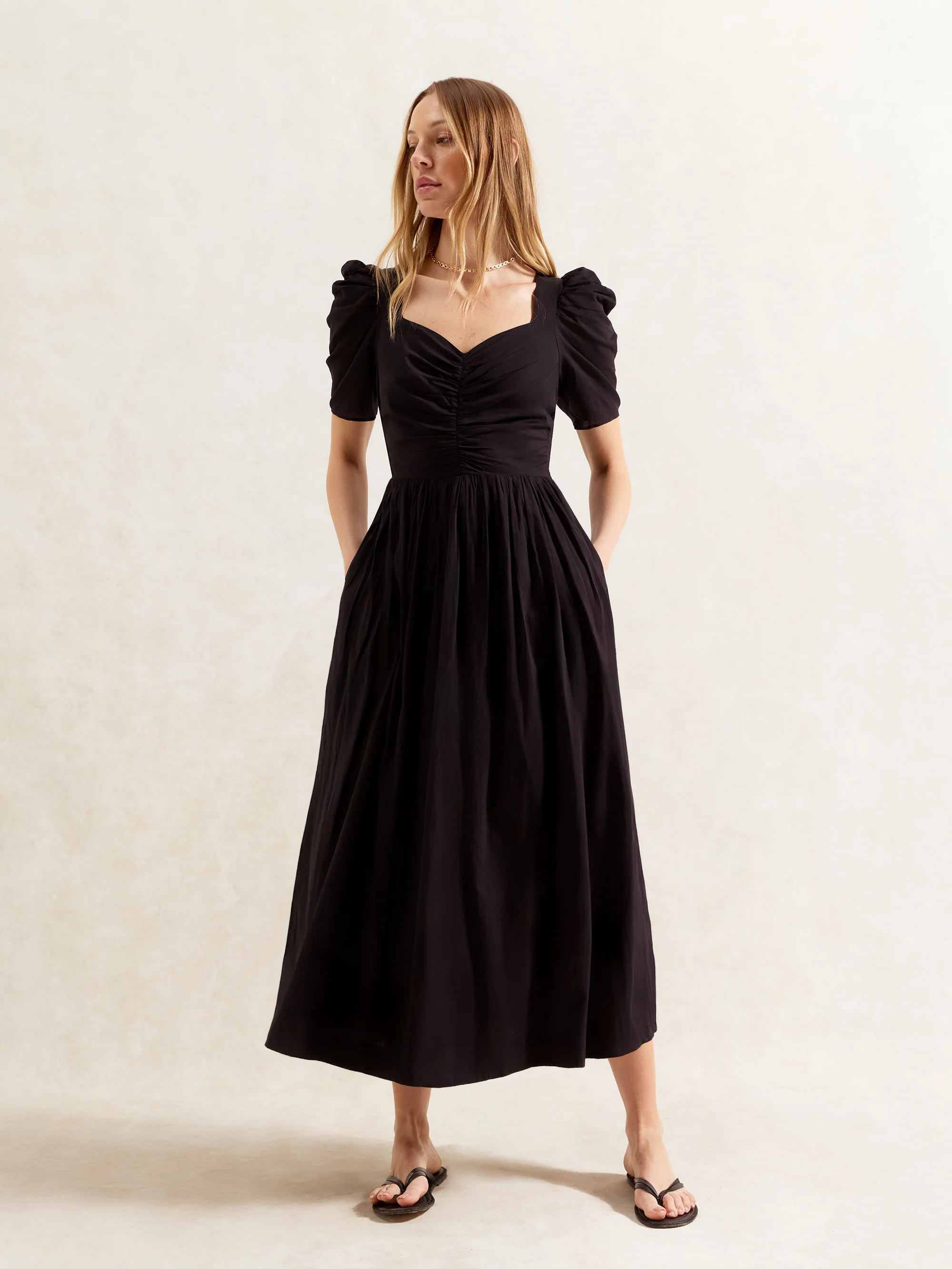 Black Sweetheart Neckline Cotton Voile Midi Dress