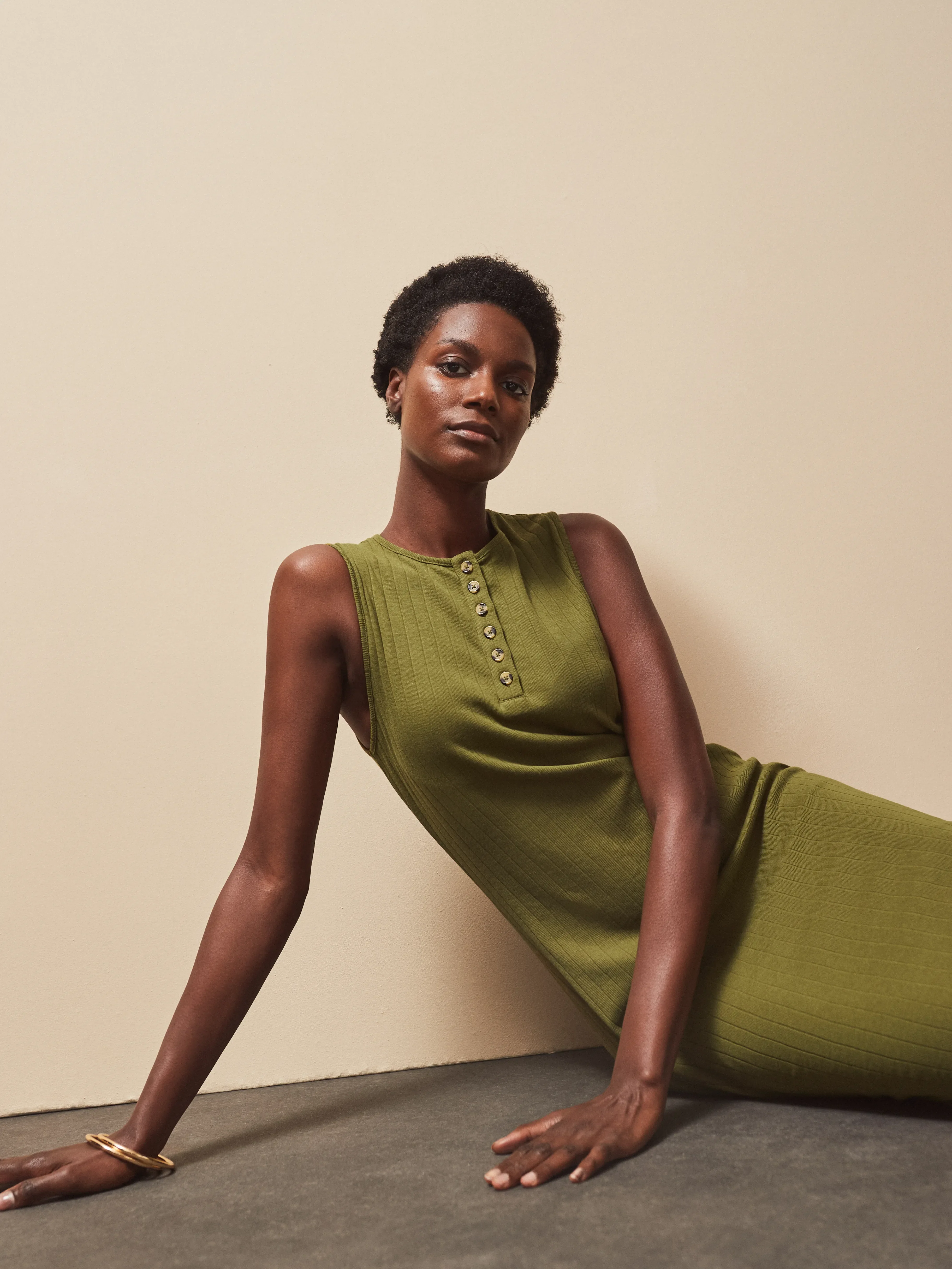 Olive Rib Column Dress