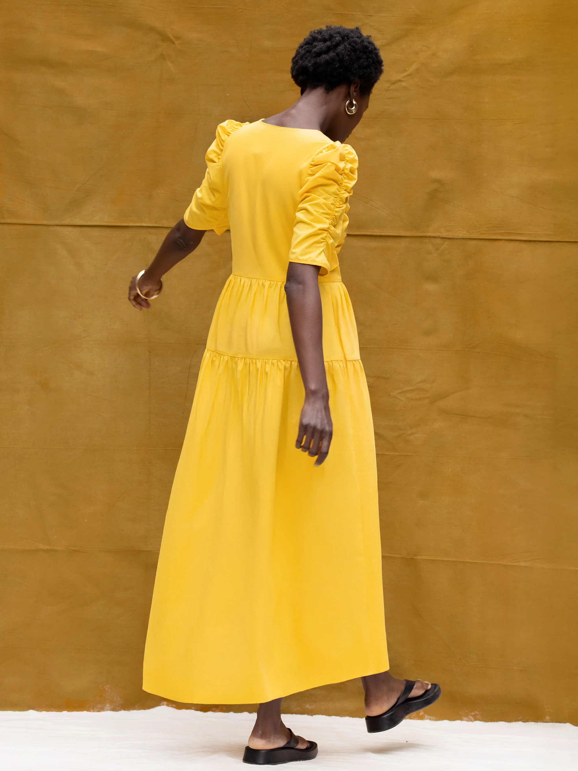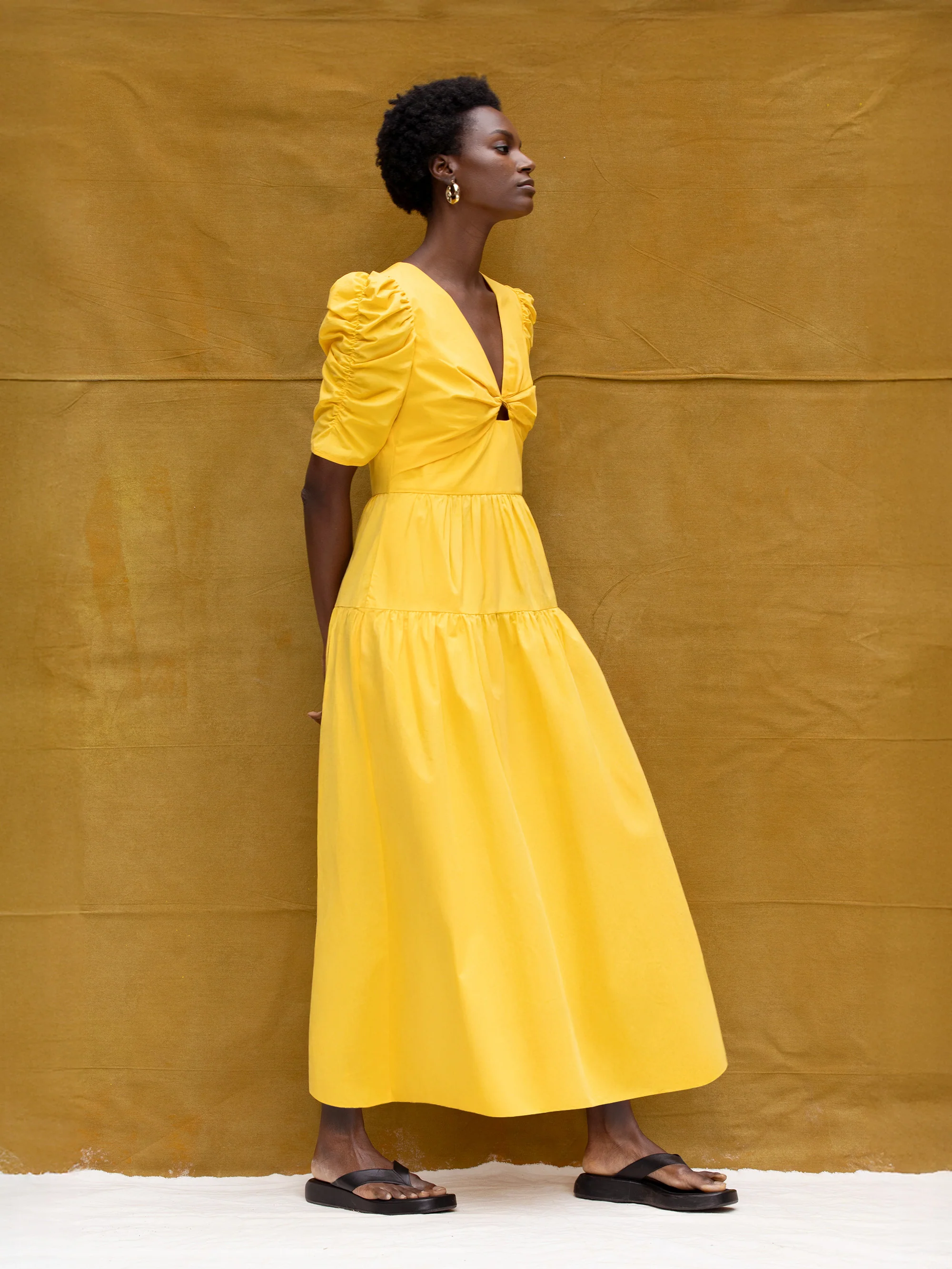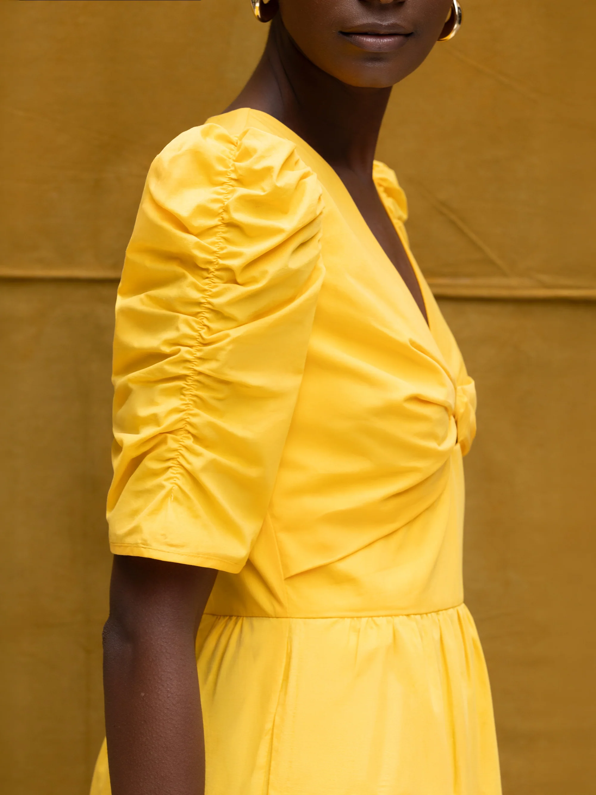 Yellow Cotton Poplin Twist Front Dress