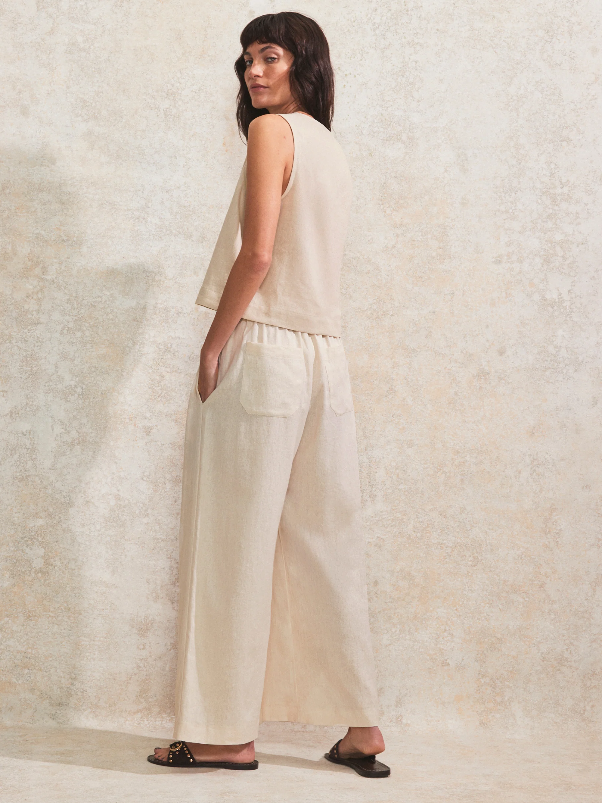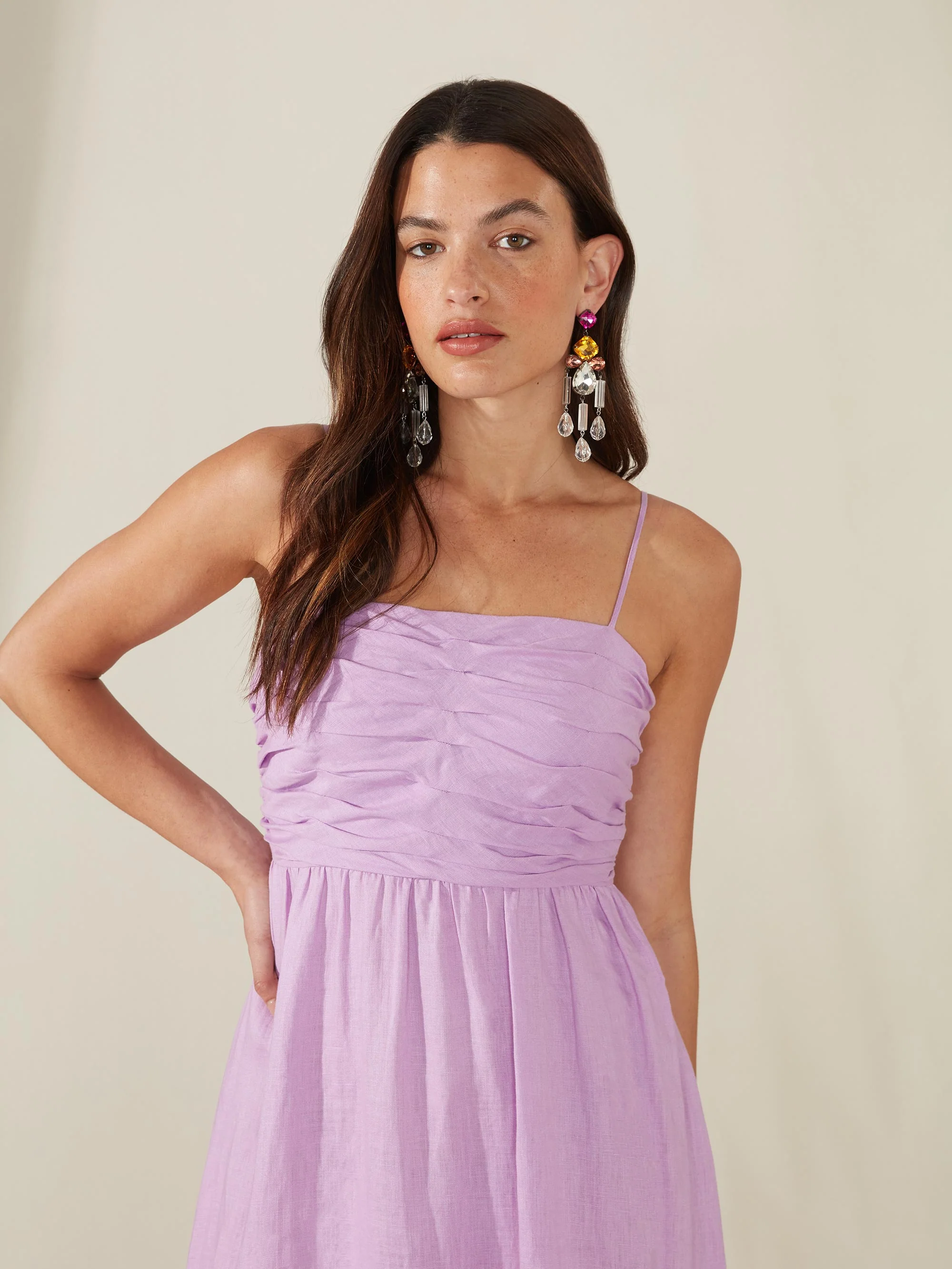 Khaki Ruched-Waist Cotton Maxi Skirt