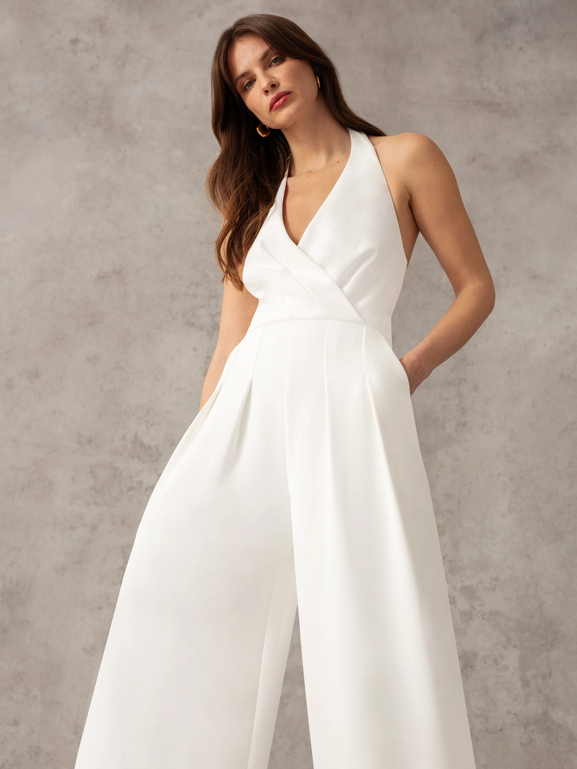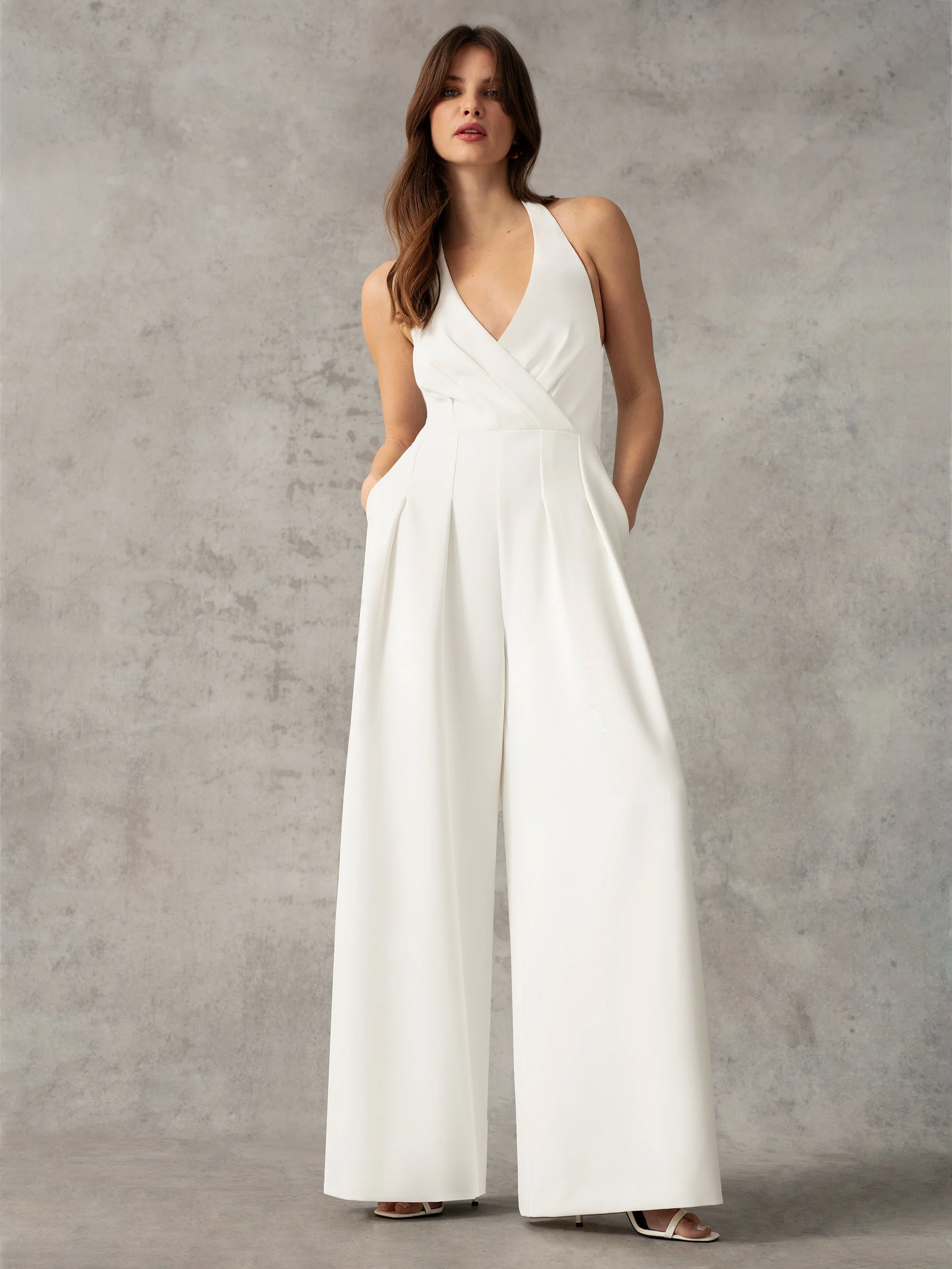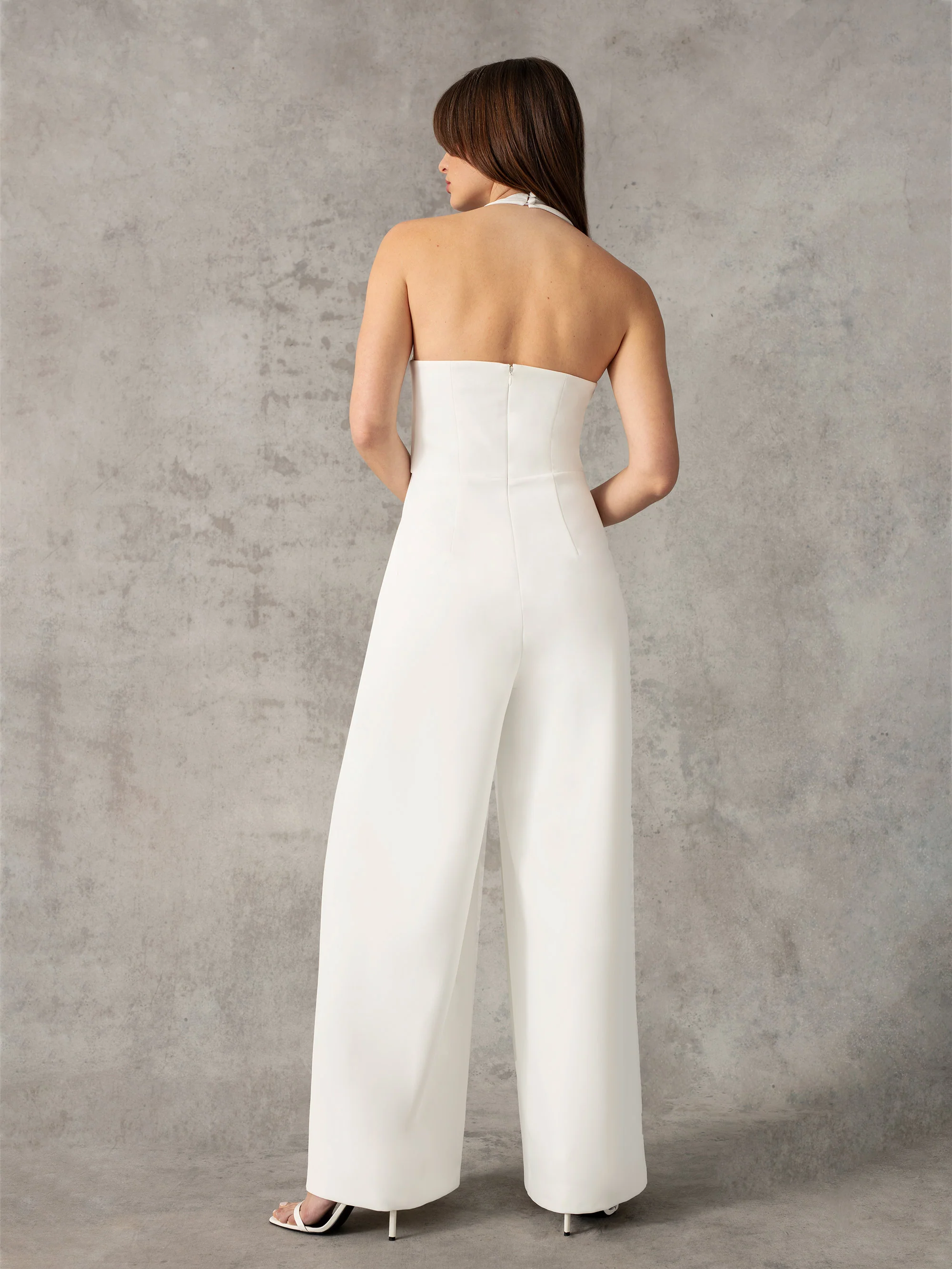 White Crepe Halterneck Wide Leg Jumpsuit