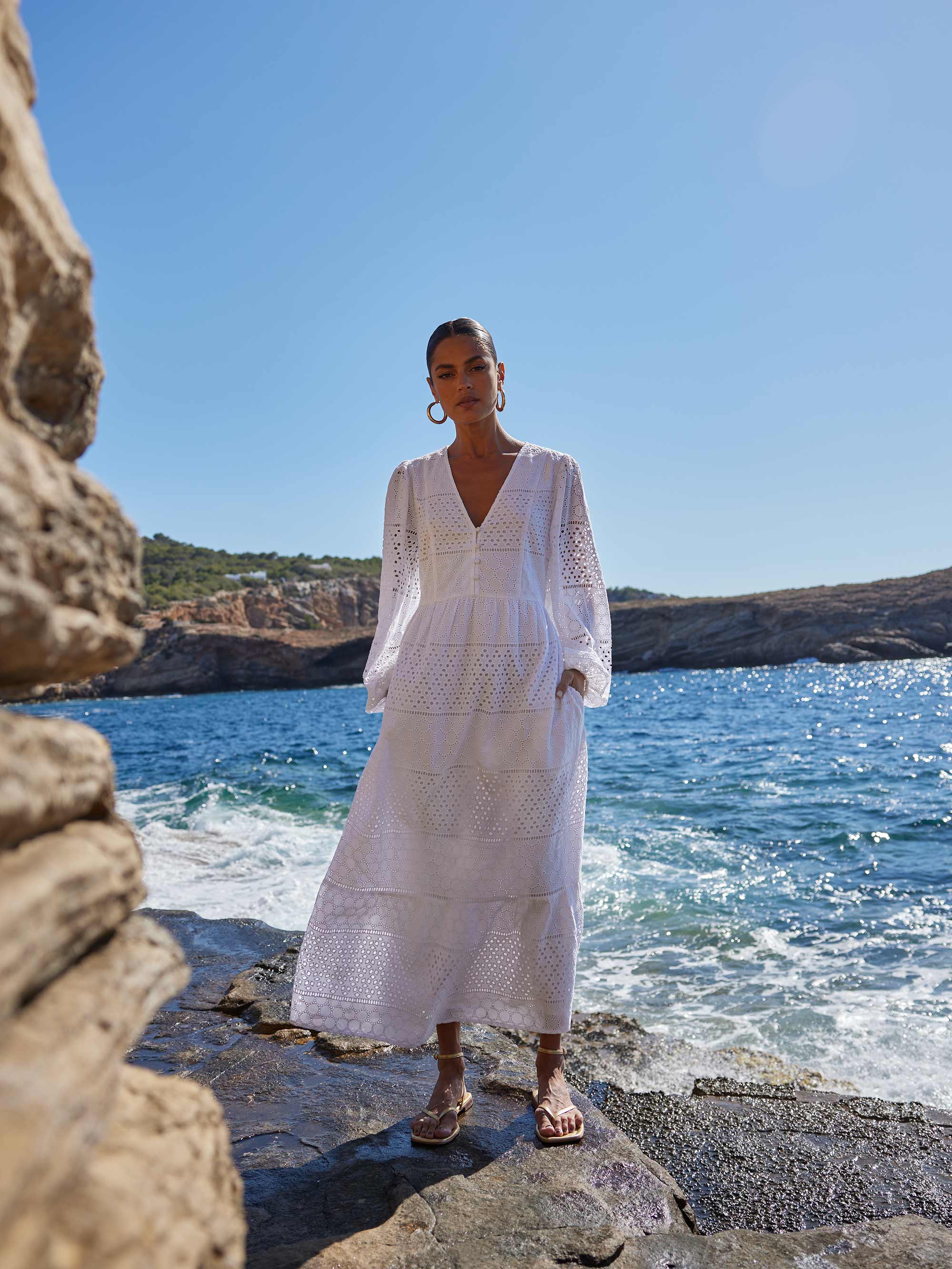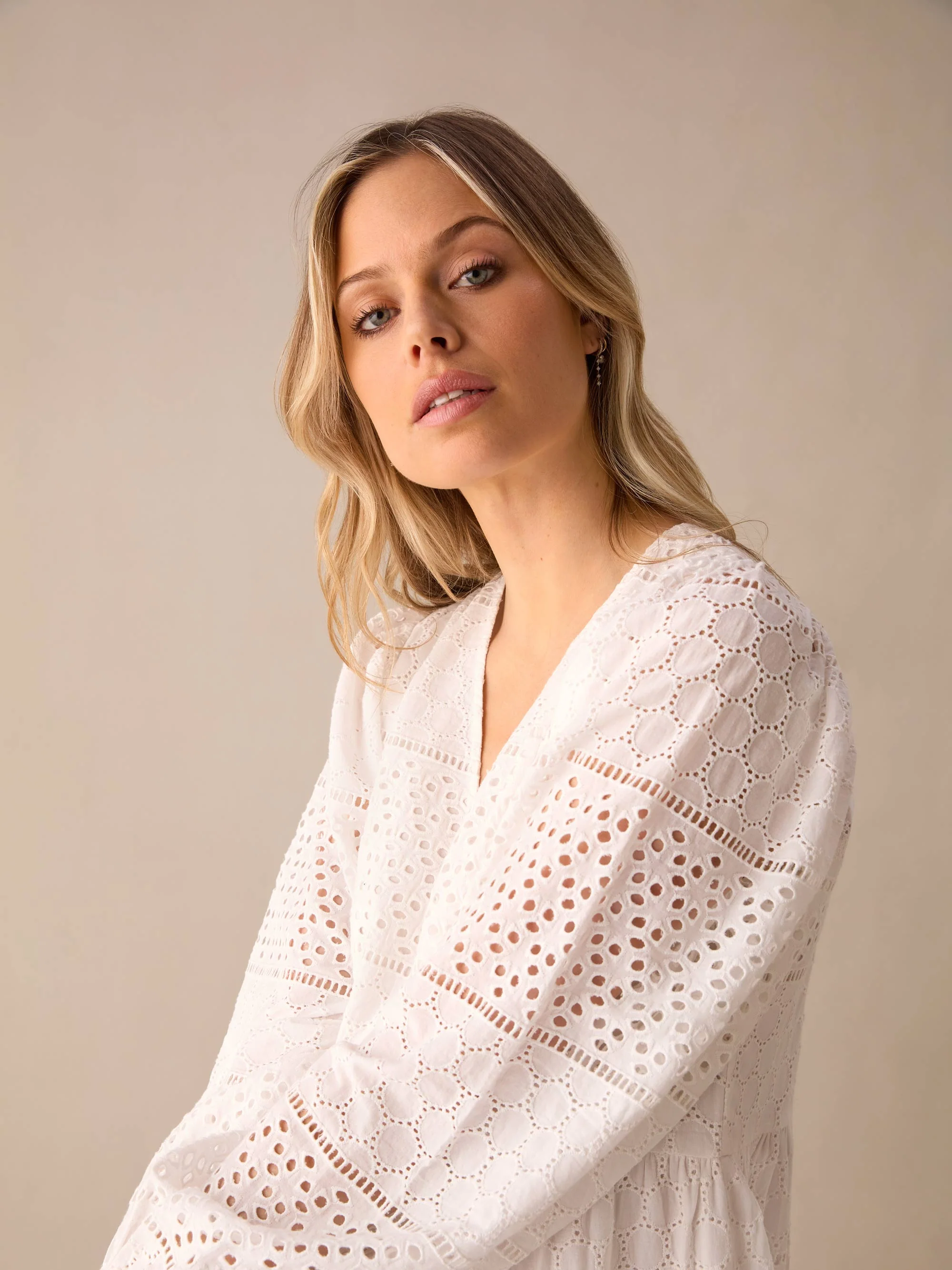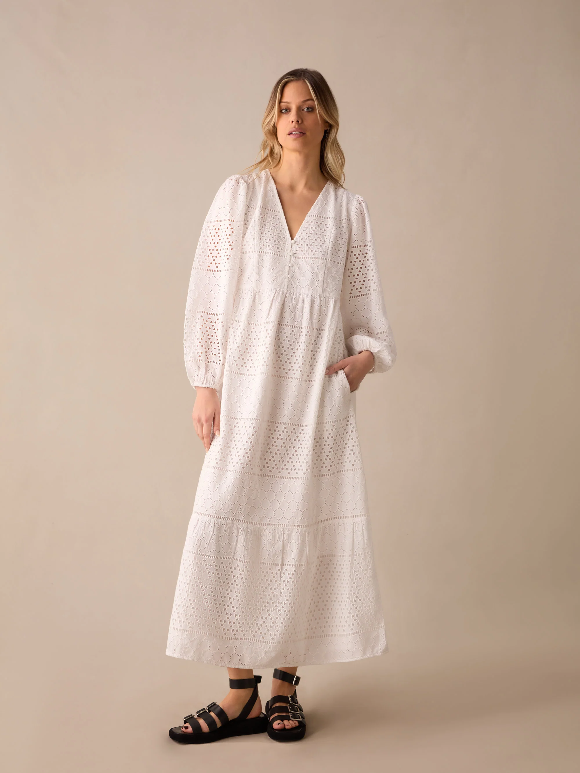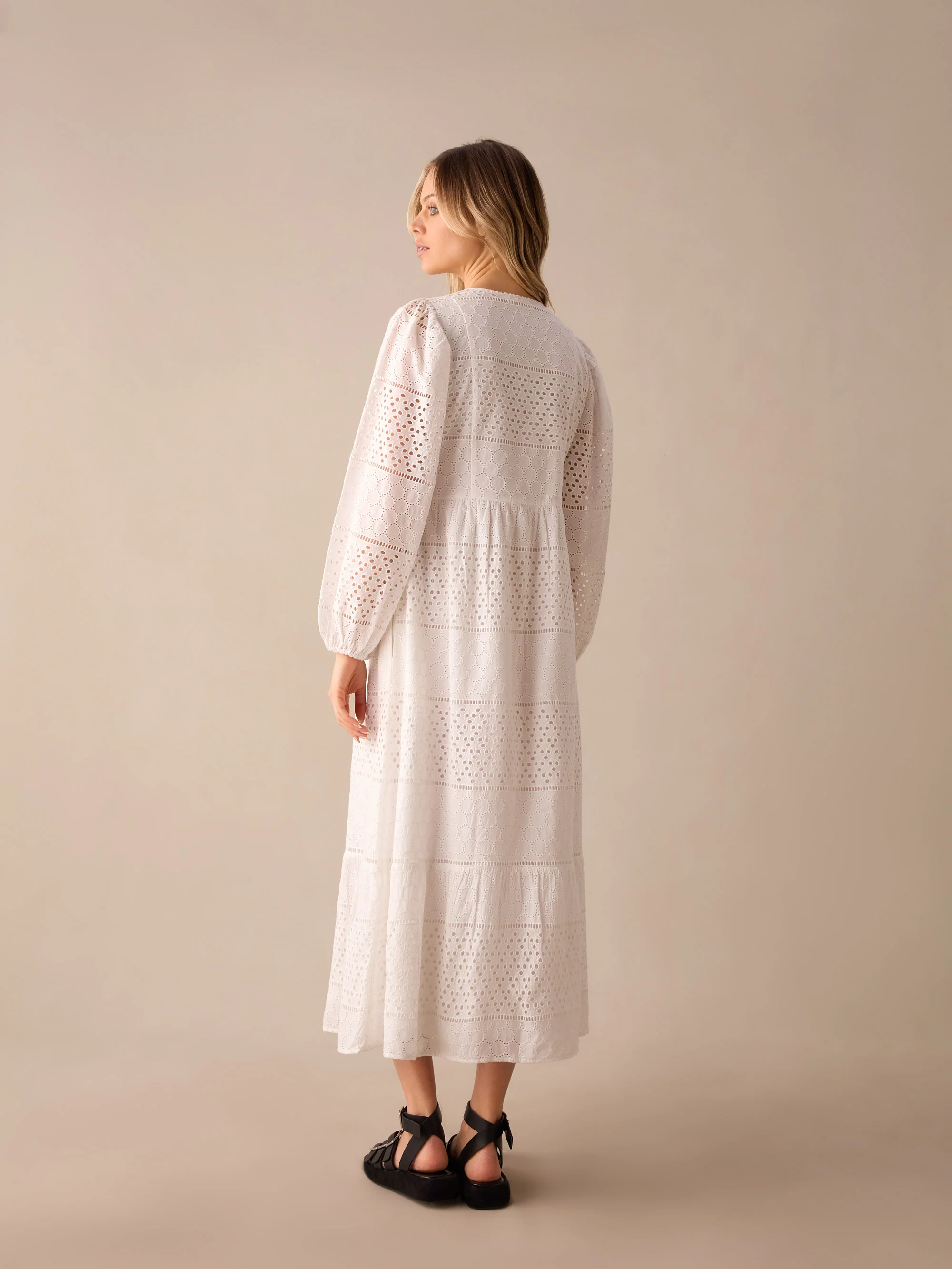 Broderie Mix Midi Dress