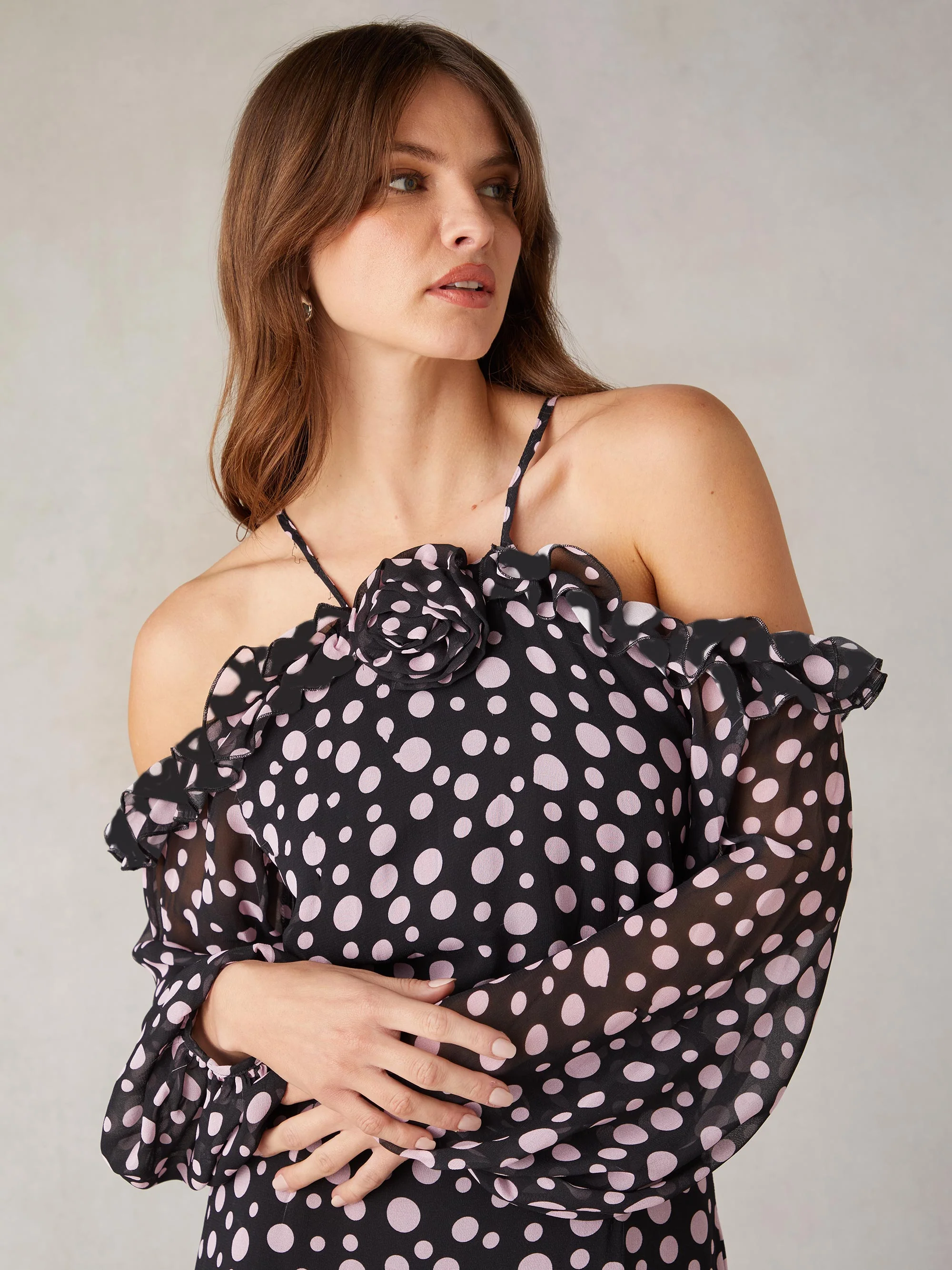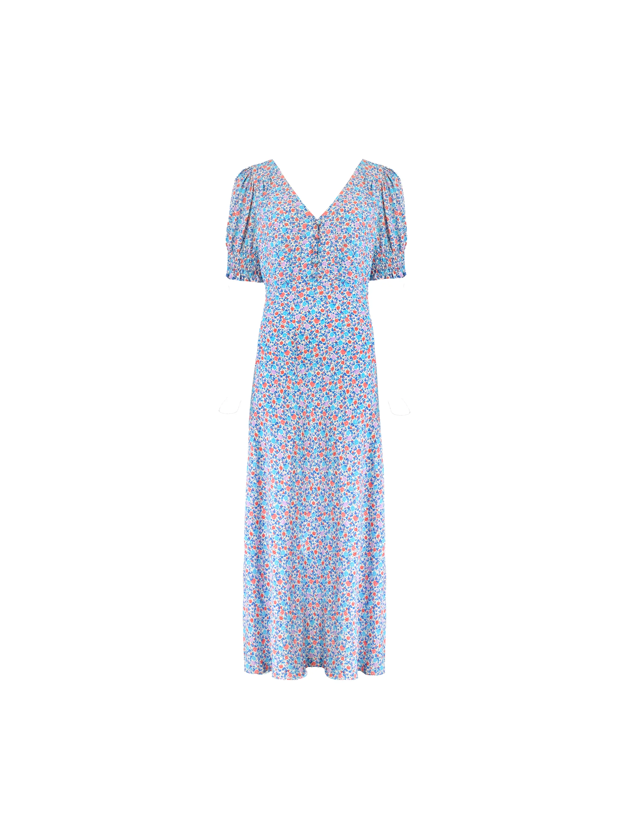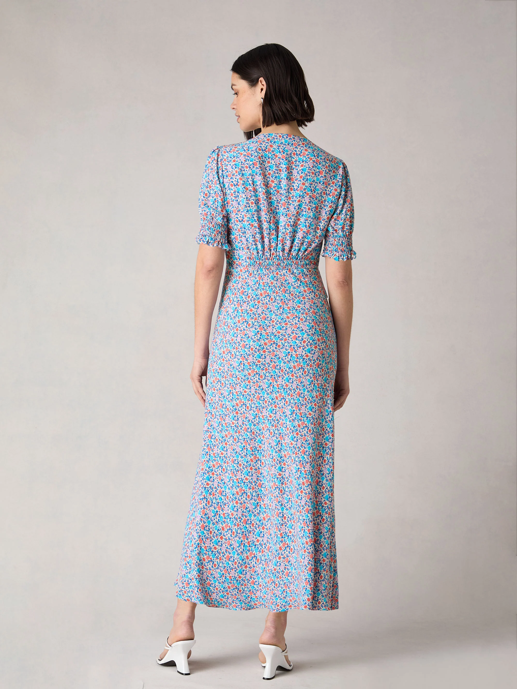 Petite Multi Ditsy Print Shirred Cuff Midi Dress