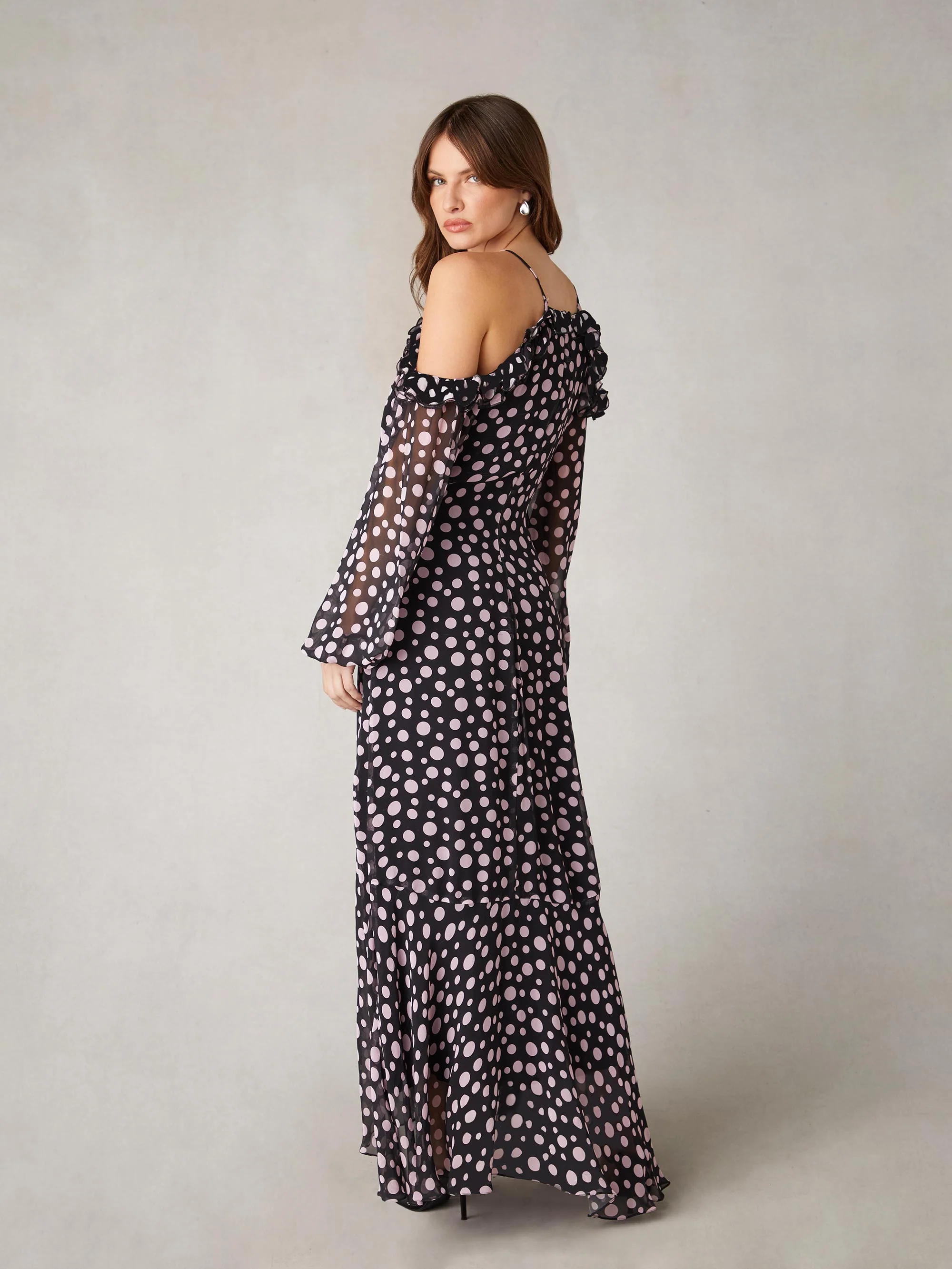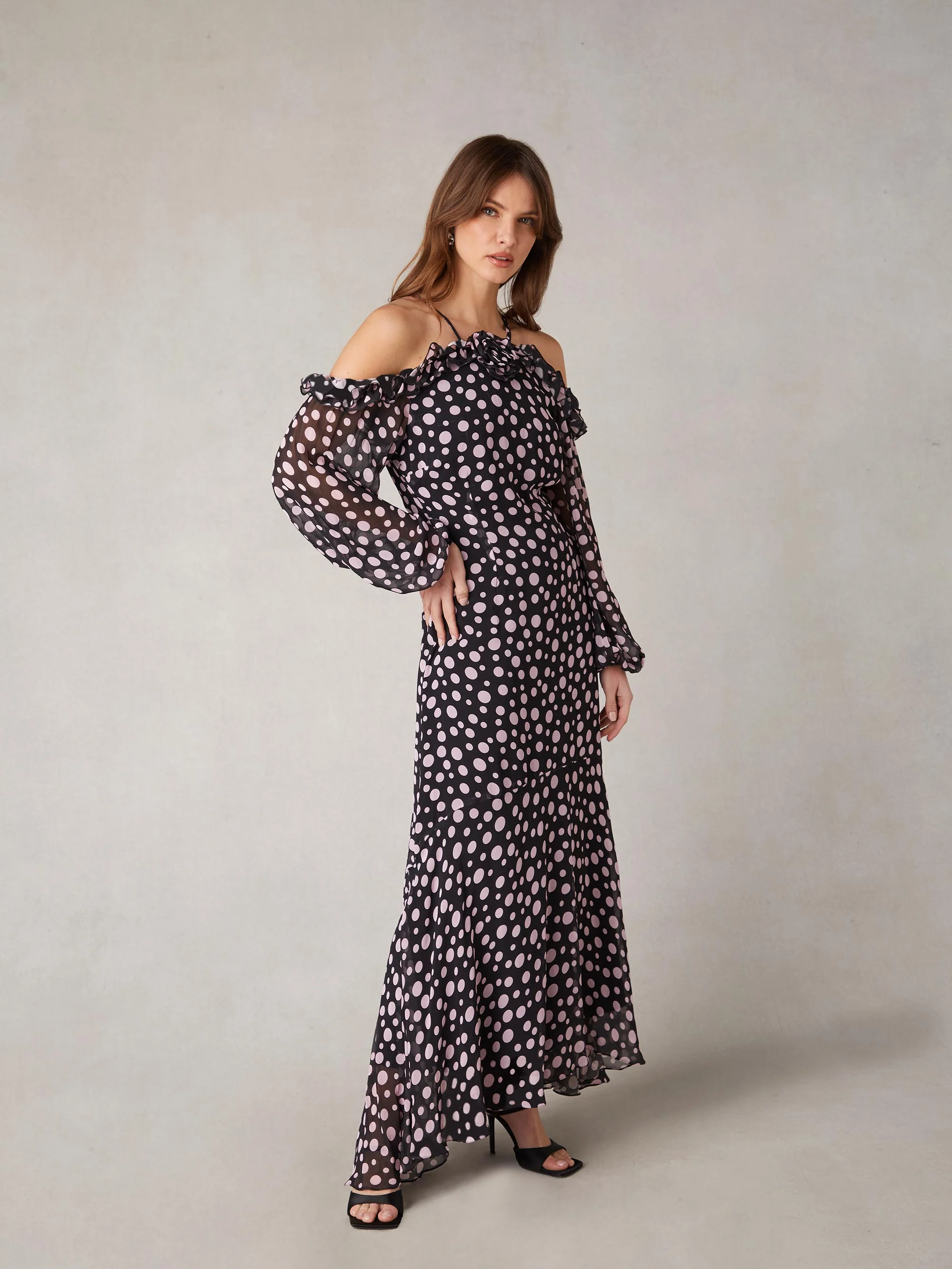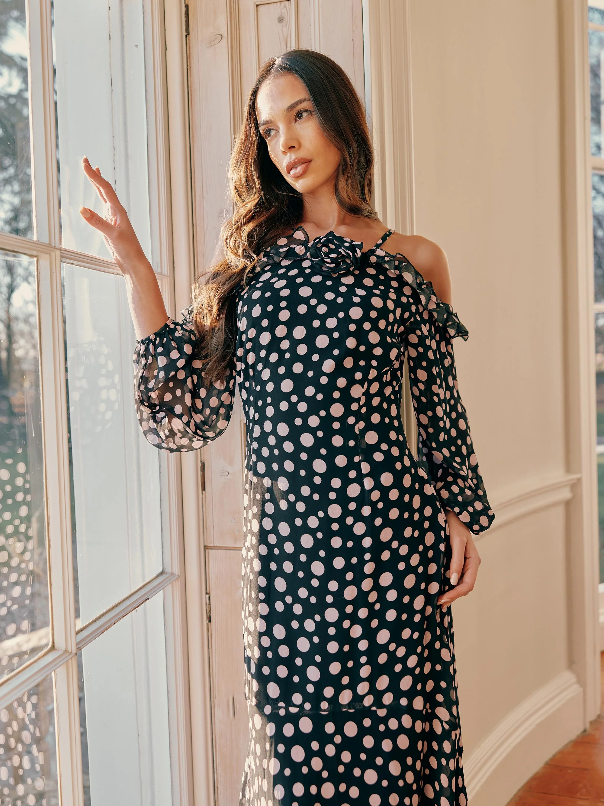 Petite Multi Ditsy Print Shirred Cuff Midi Dress
