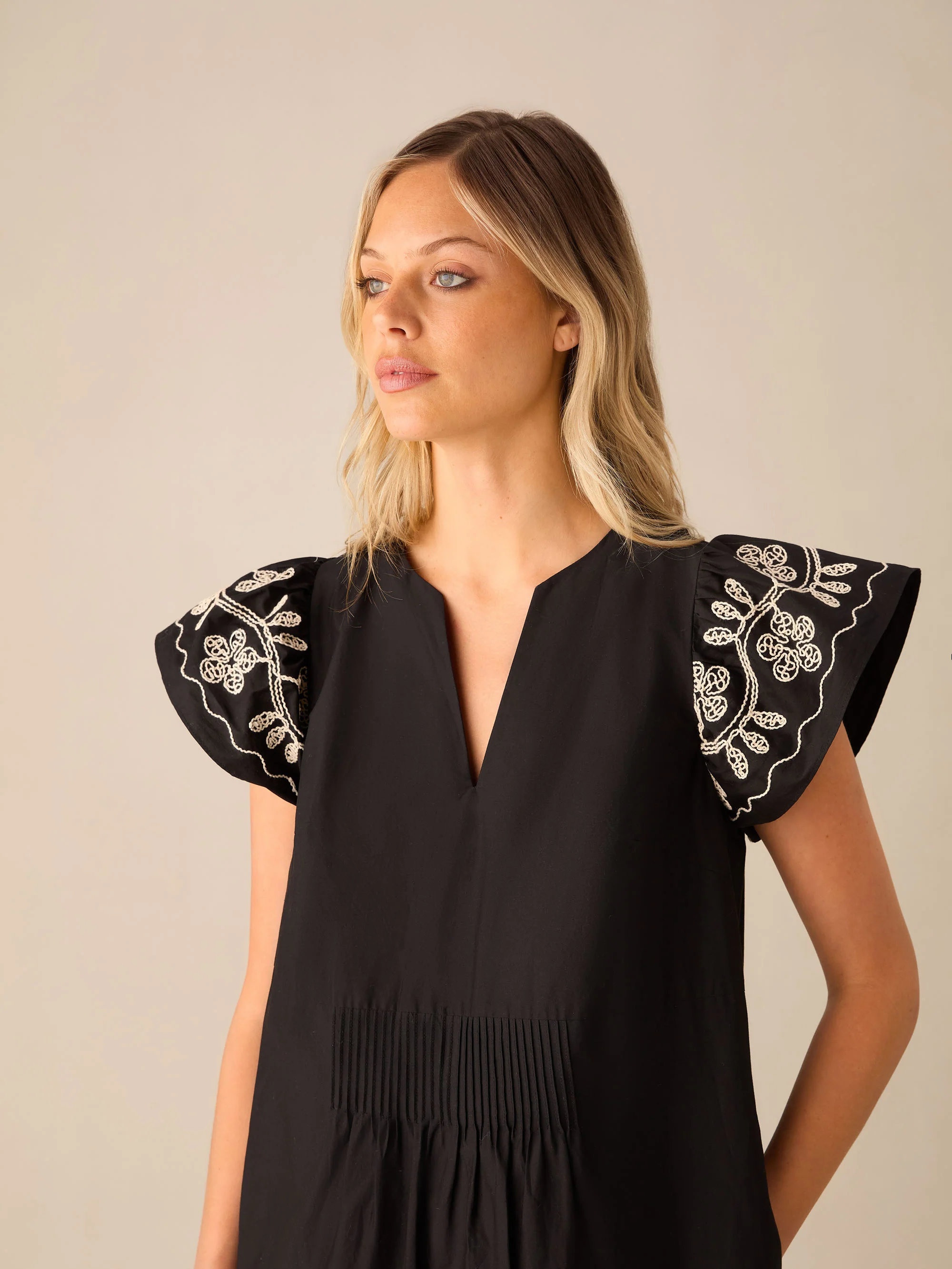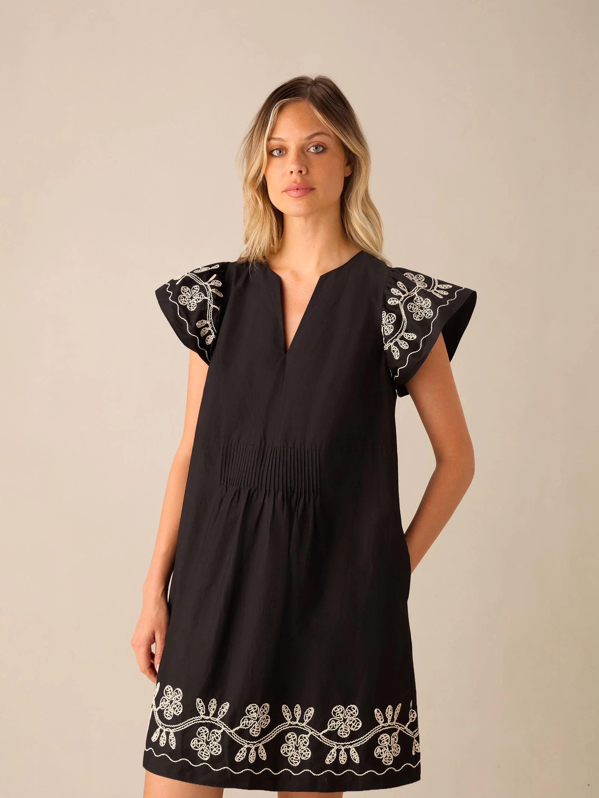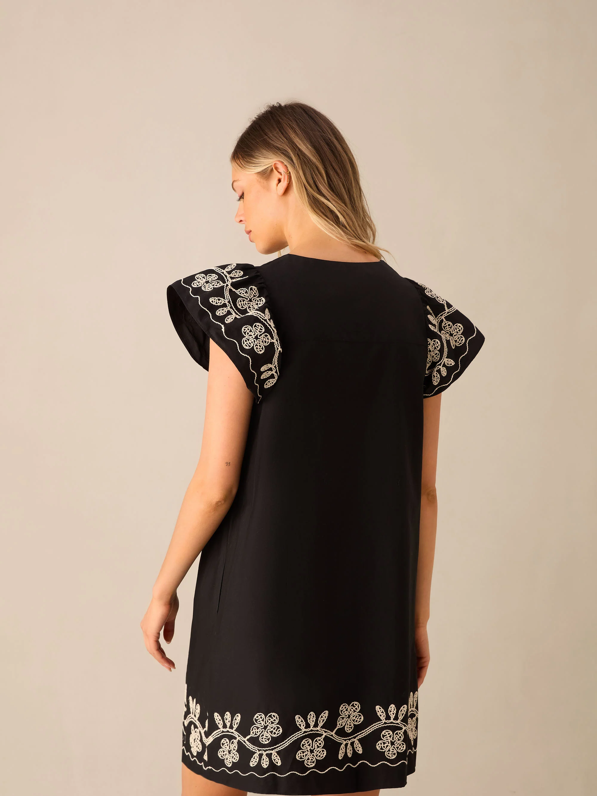 Black Embroidered Frill Short Dress
