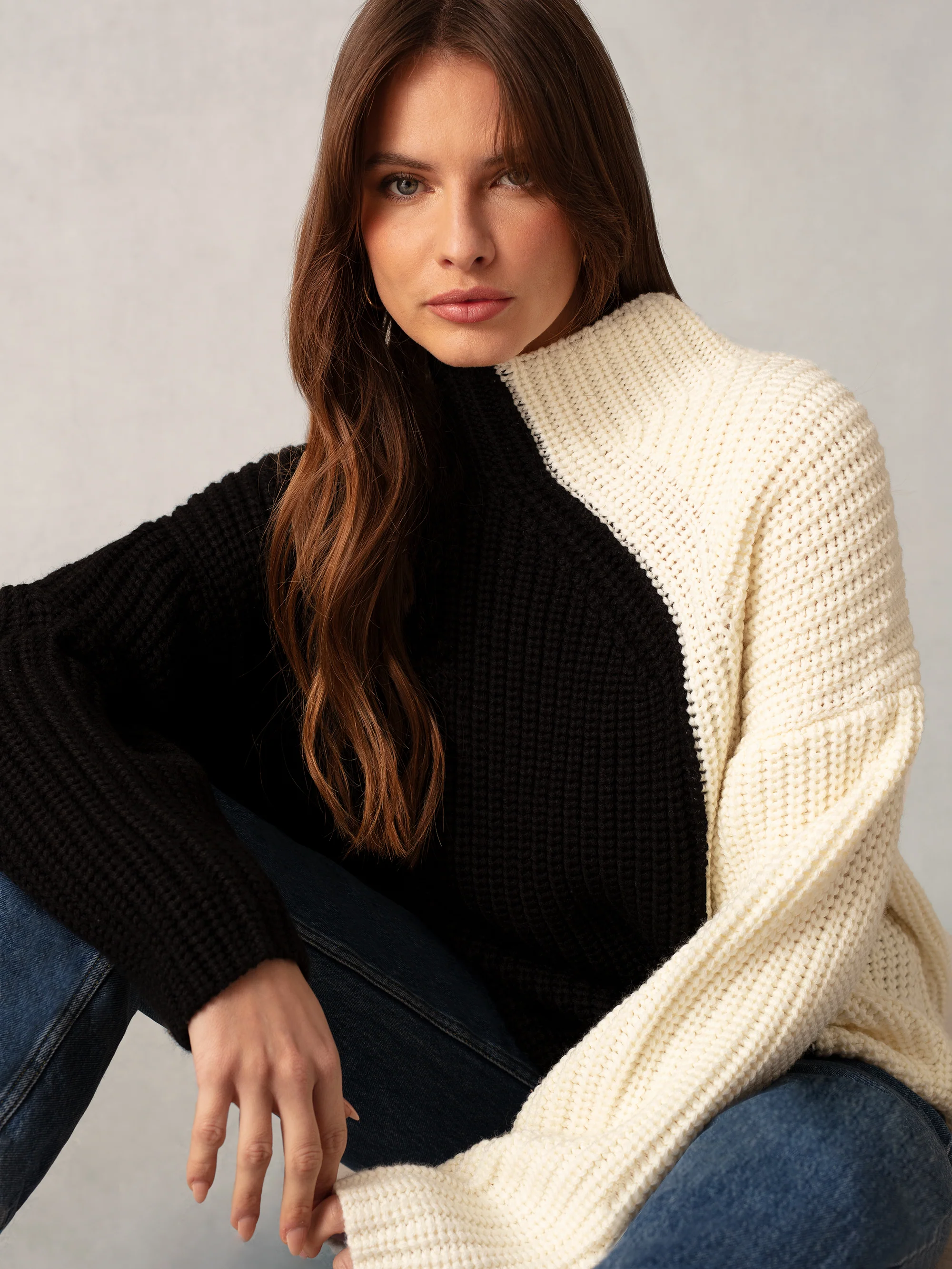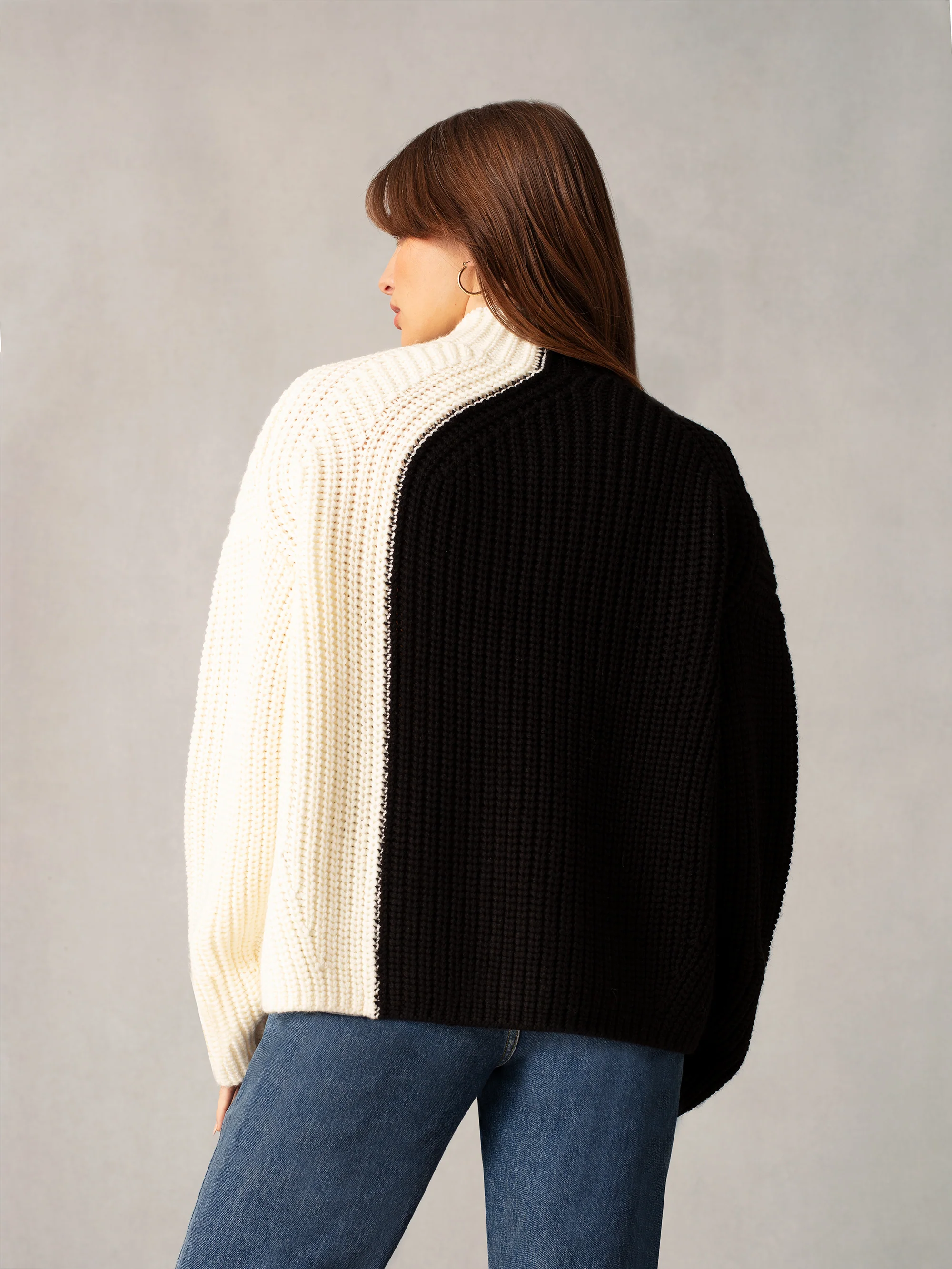 Black Two Tone Oversized Turtleneck Jumper