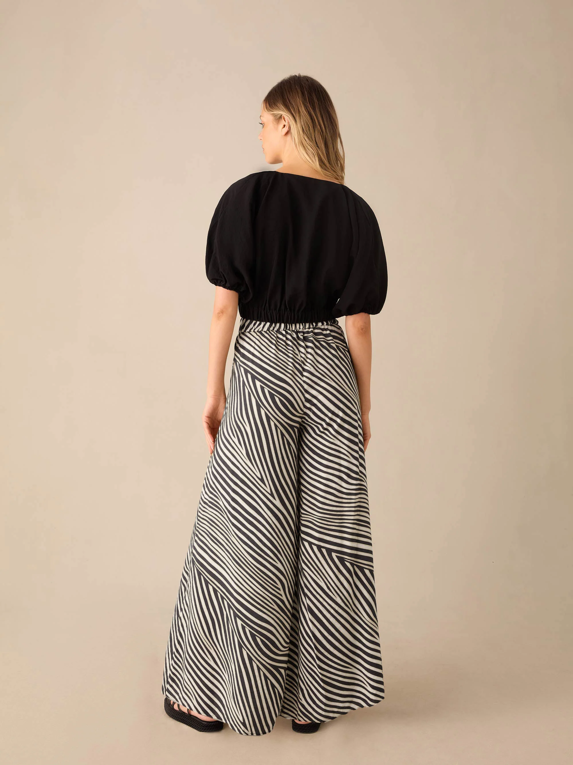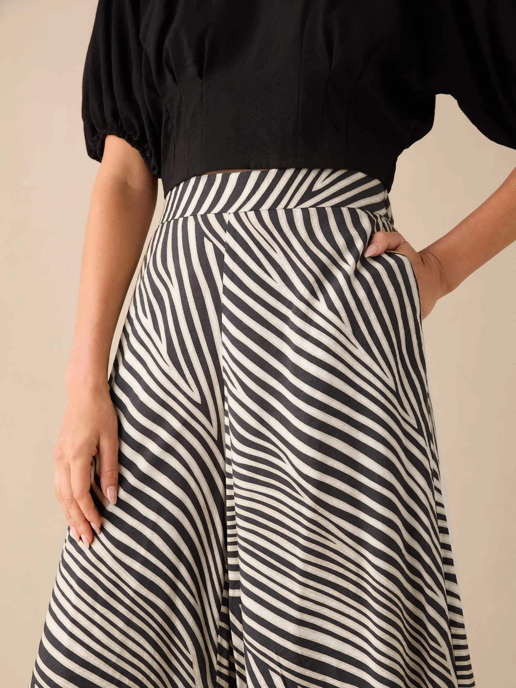 Neutral Animal Print Wide Leg Trousers