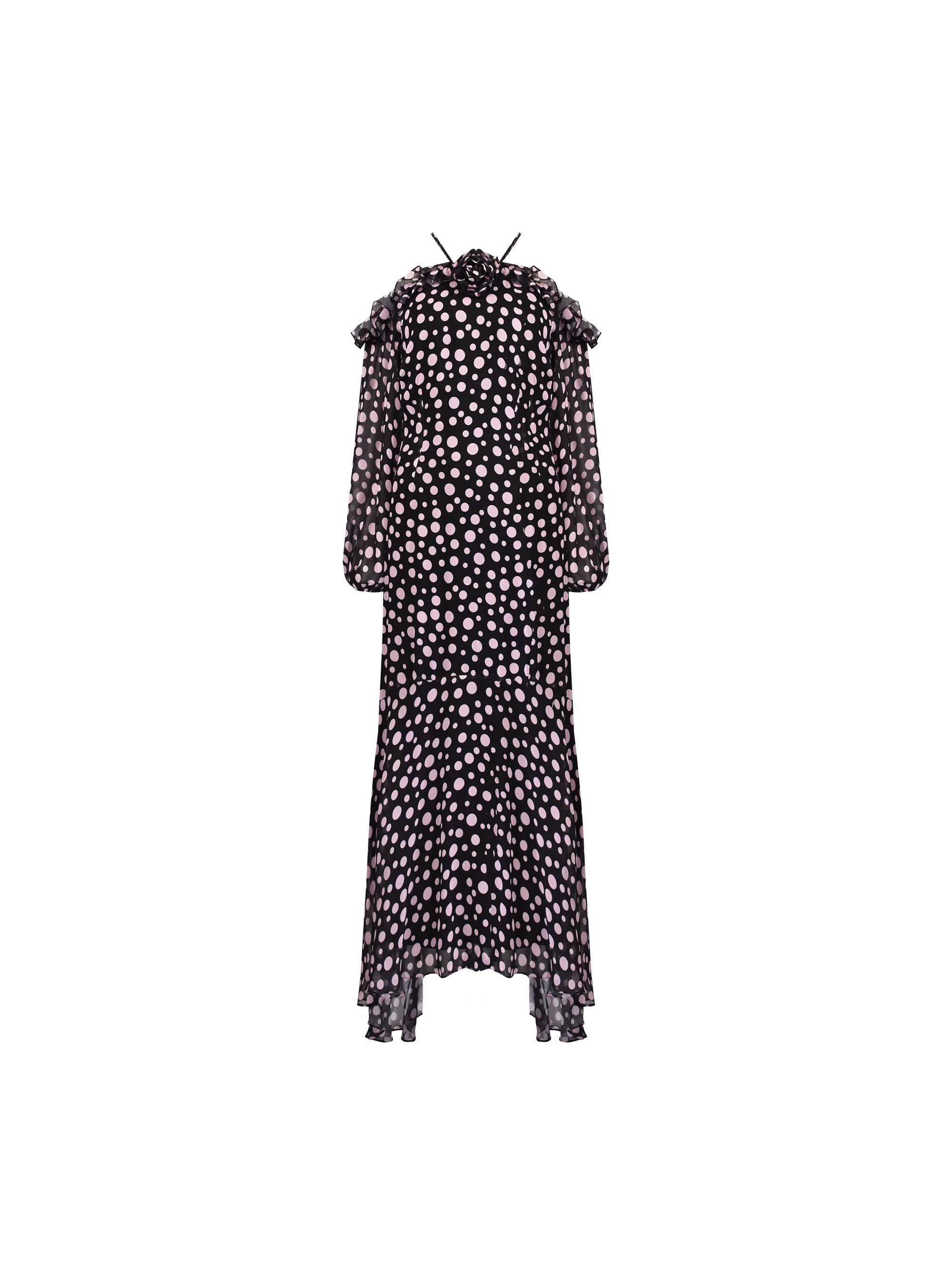 Arianna Pink Polka Dot Corsage High Low Dress