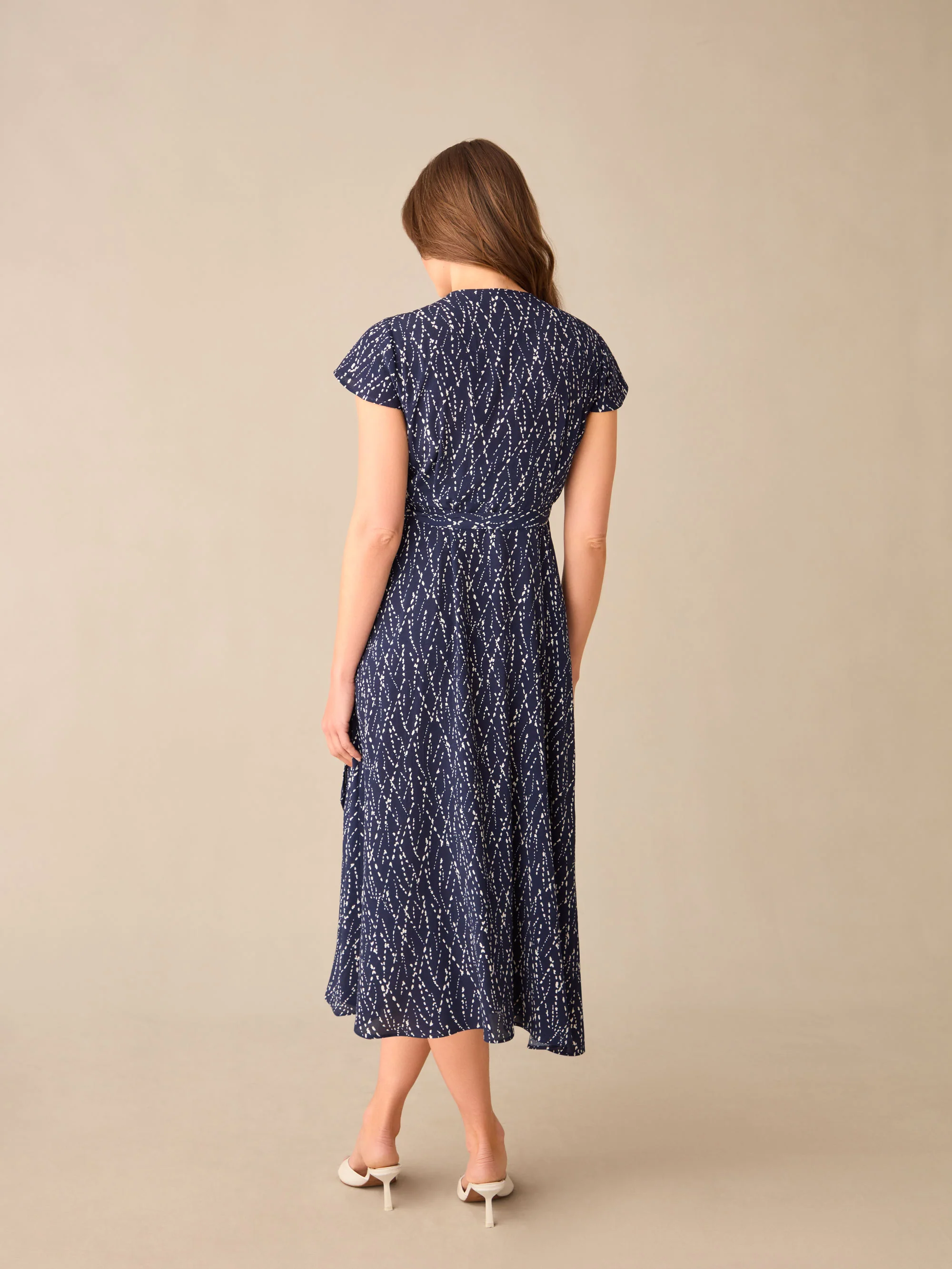 Petite Navy Dash Print Wrap Midi Dress